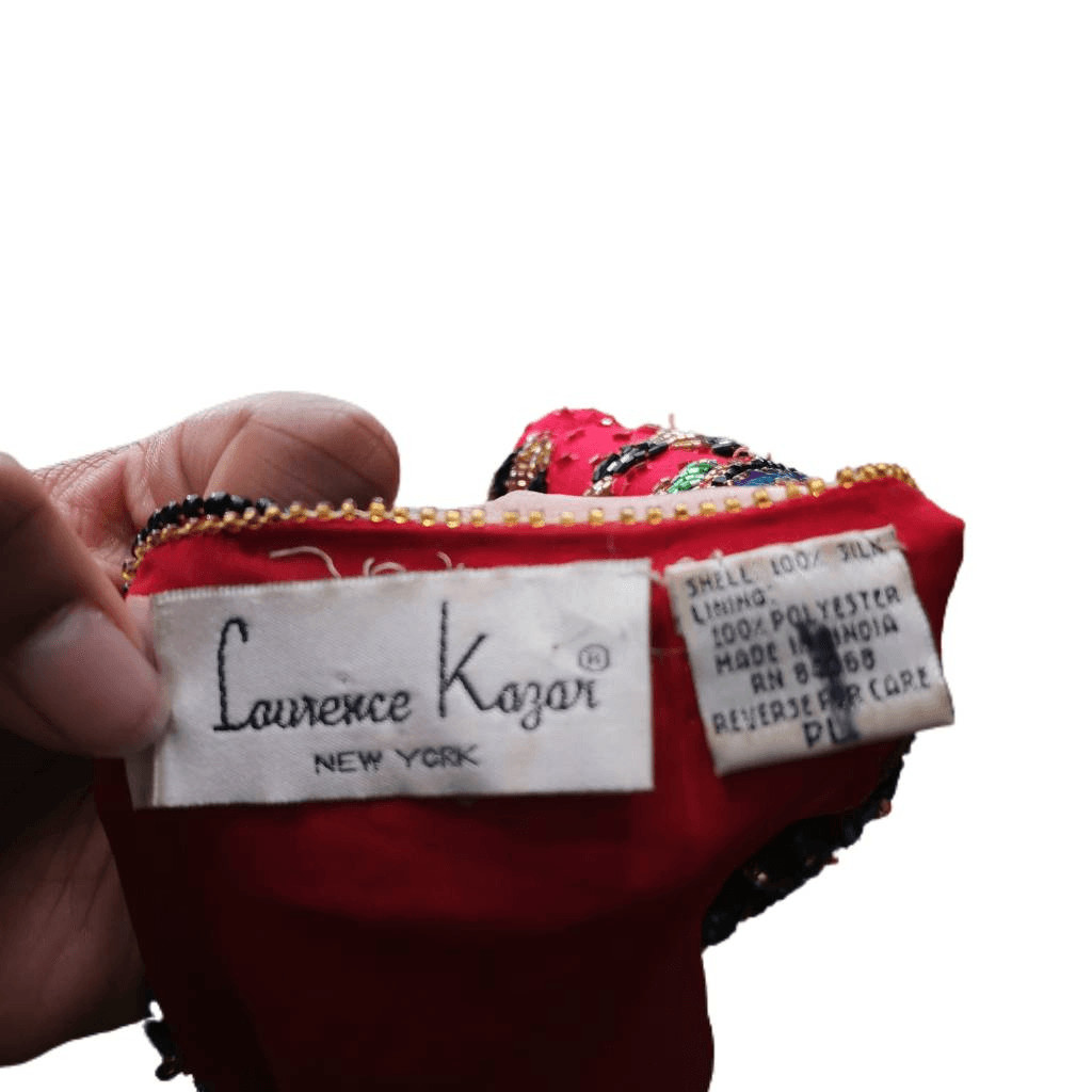 как выглядит Vintage Red Silk Jacket Hand Embellished in Beads/Sequins in a Tassel Design фото