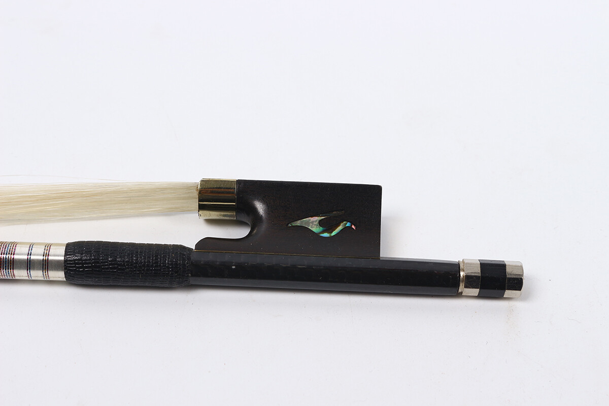 как выглядит 4/4 Violin Bow Color Silk Braid Carbon FIber Ebony Frog Bows Hair Flower Inlay фото