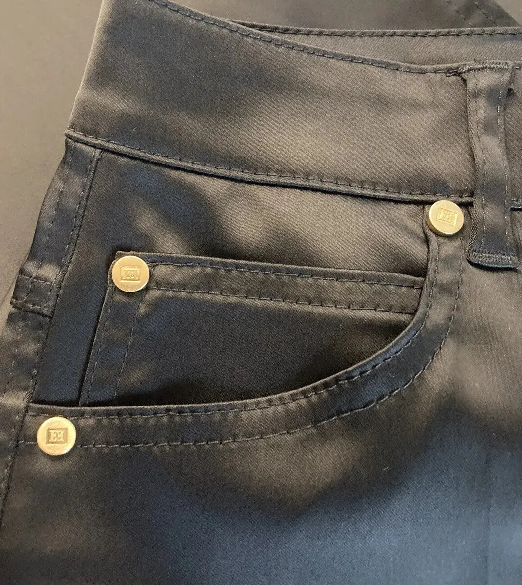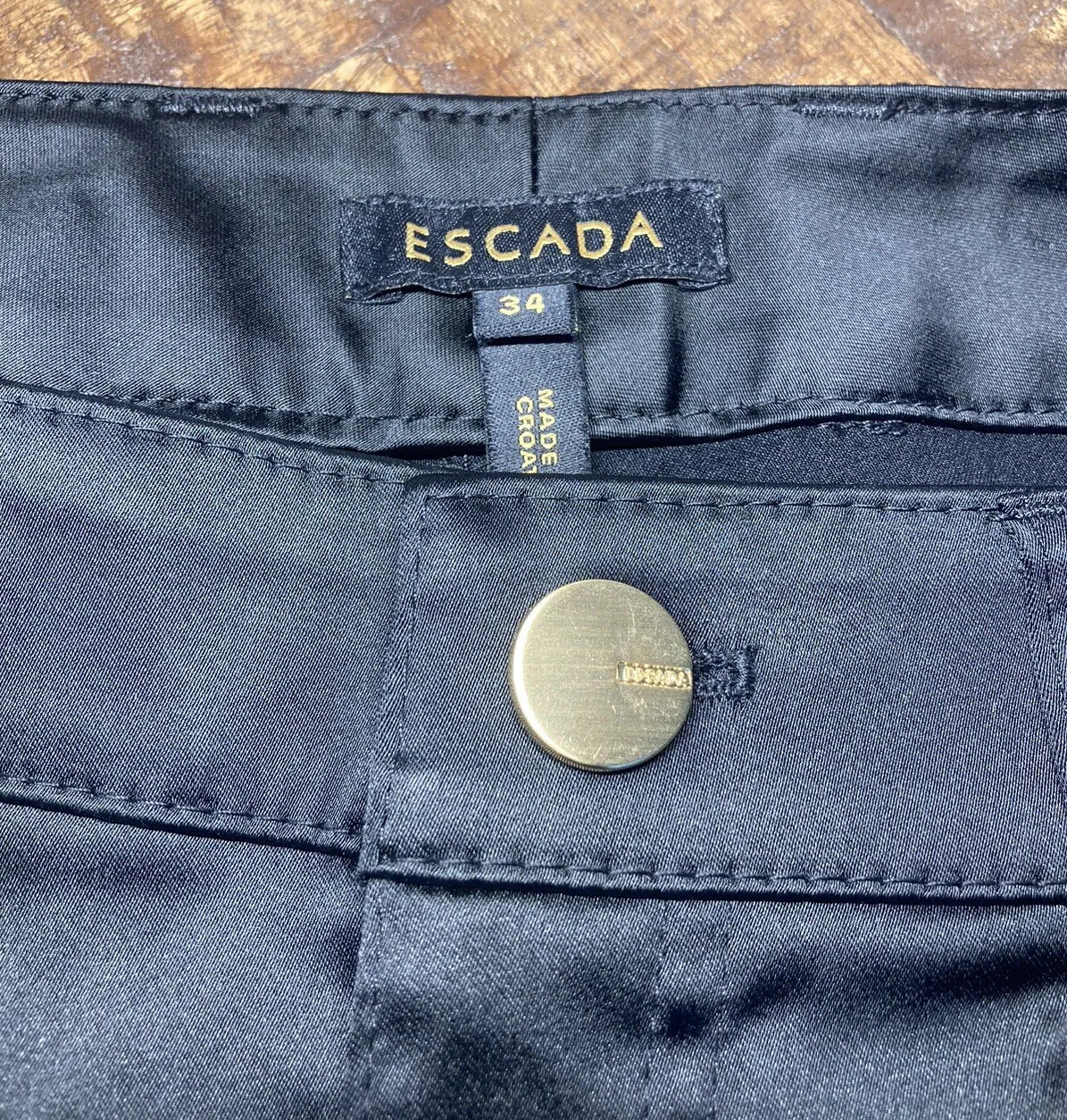 как выглядит Escada Black Gold Accents Luxury Shiny Pants Size 34/ Small фото