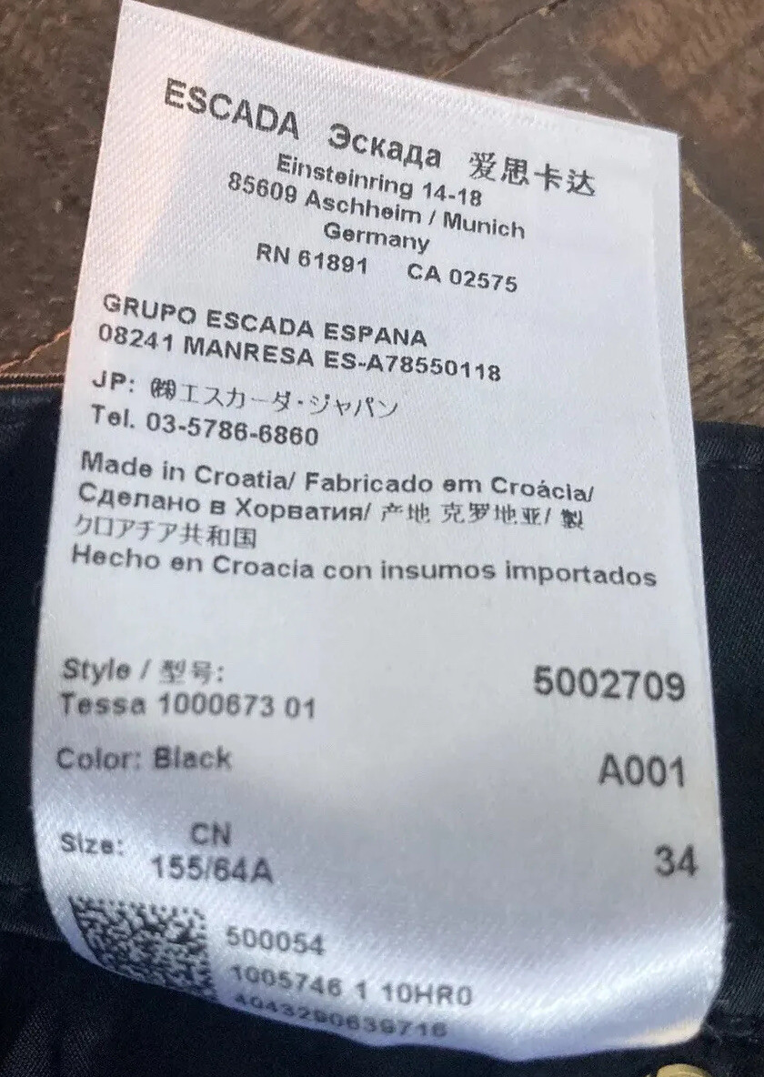 Escada Black Gold Accents Luxury Shiny Pants Size 34/ Small