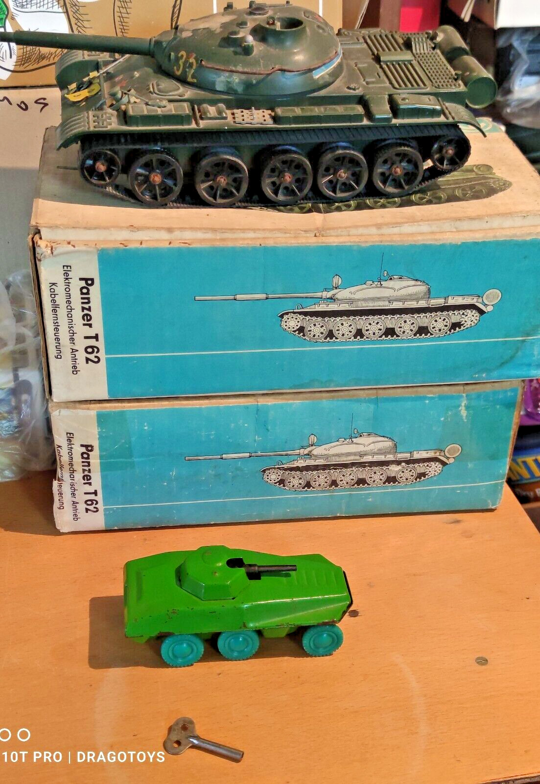 как выглядит VINTAGE MILLITARY TANK TIN PLASTIC TOY WIND UP MECHANICAL SPARKS USSR AND KEY фото