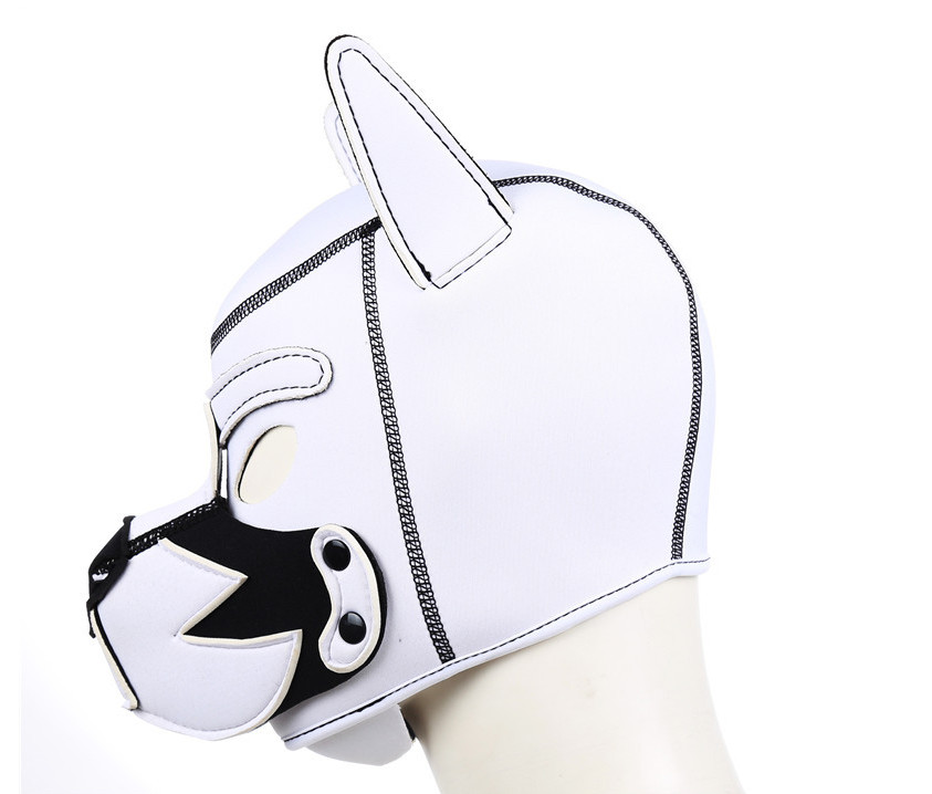 PU Leather Full Head Dog Mask Role Restraints Hood Puppy Cosplay Headgear -AAA