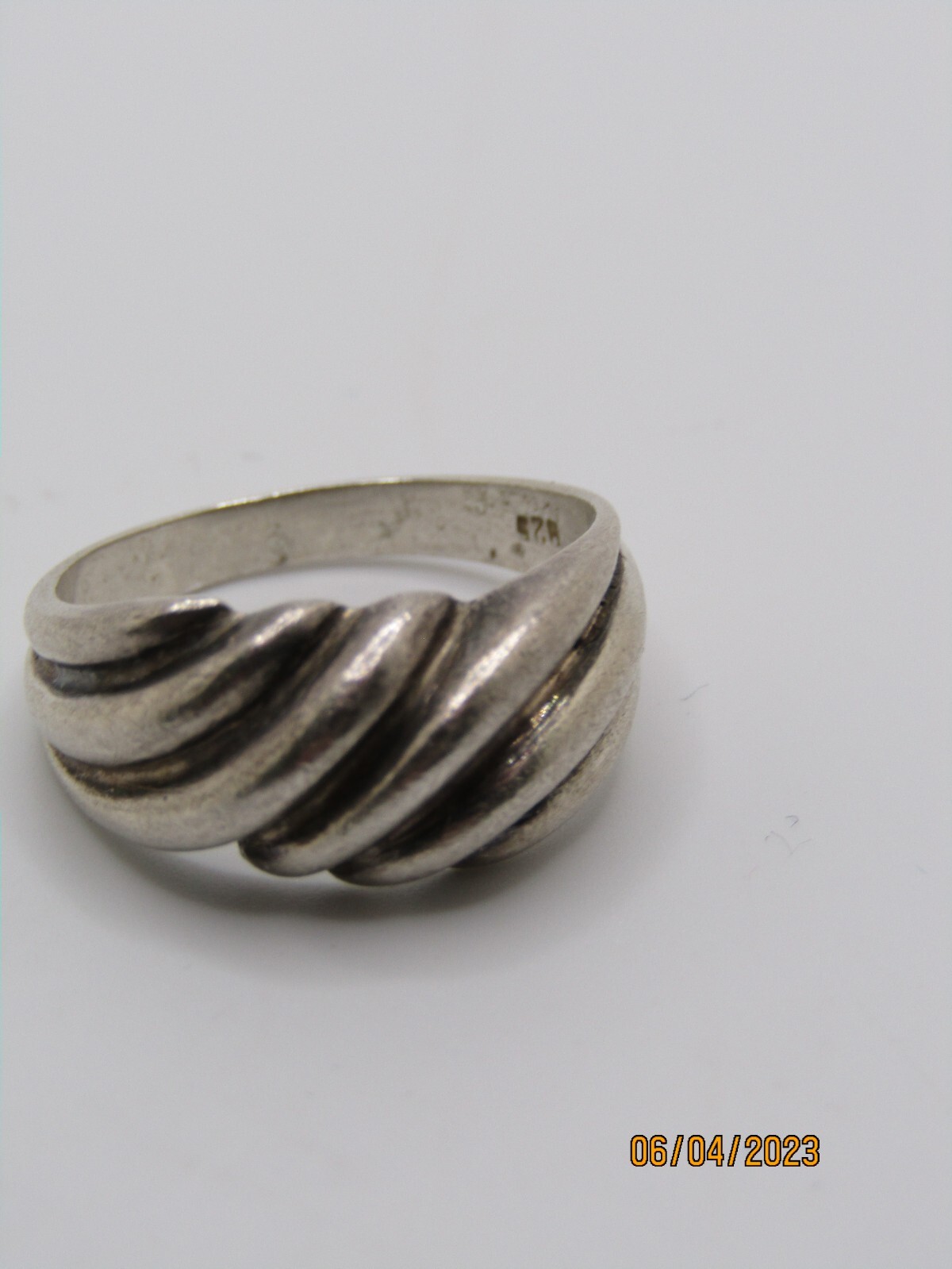 Stunning Sterling Silver Domed Drape Design Band Ring - Size 7.5 CH839