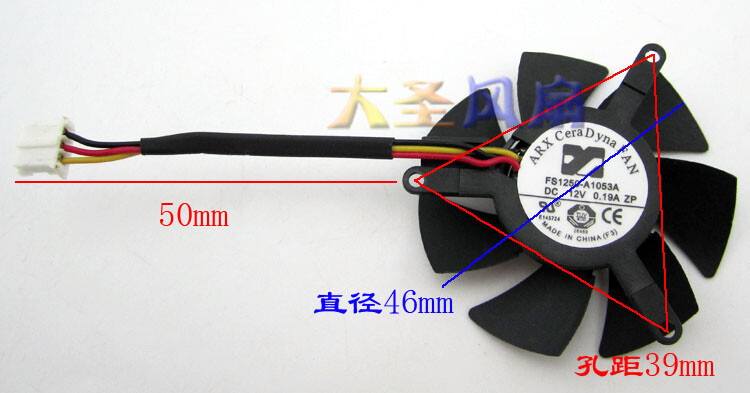 FS1250-A1053A Graphics dual fan DC12V 0.19A Pitch:39 39 39mm 3-Wire/4-Pin