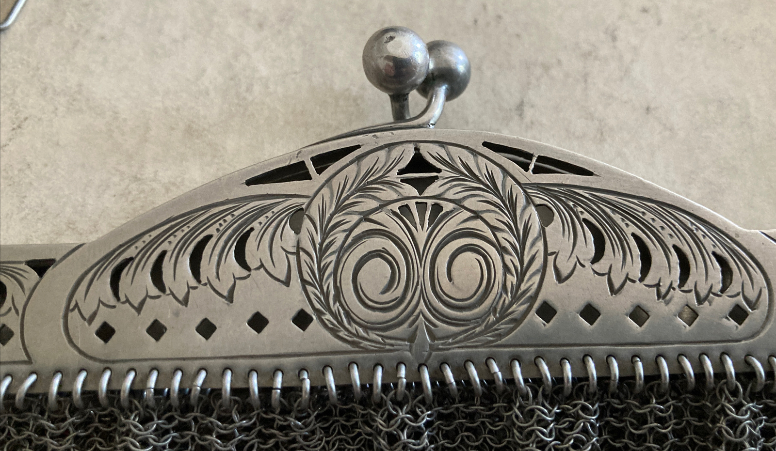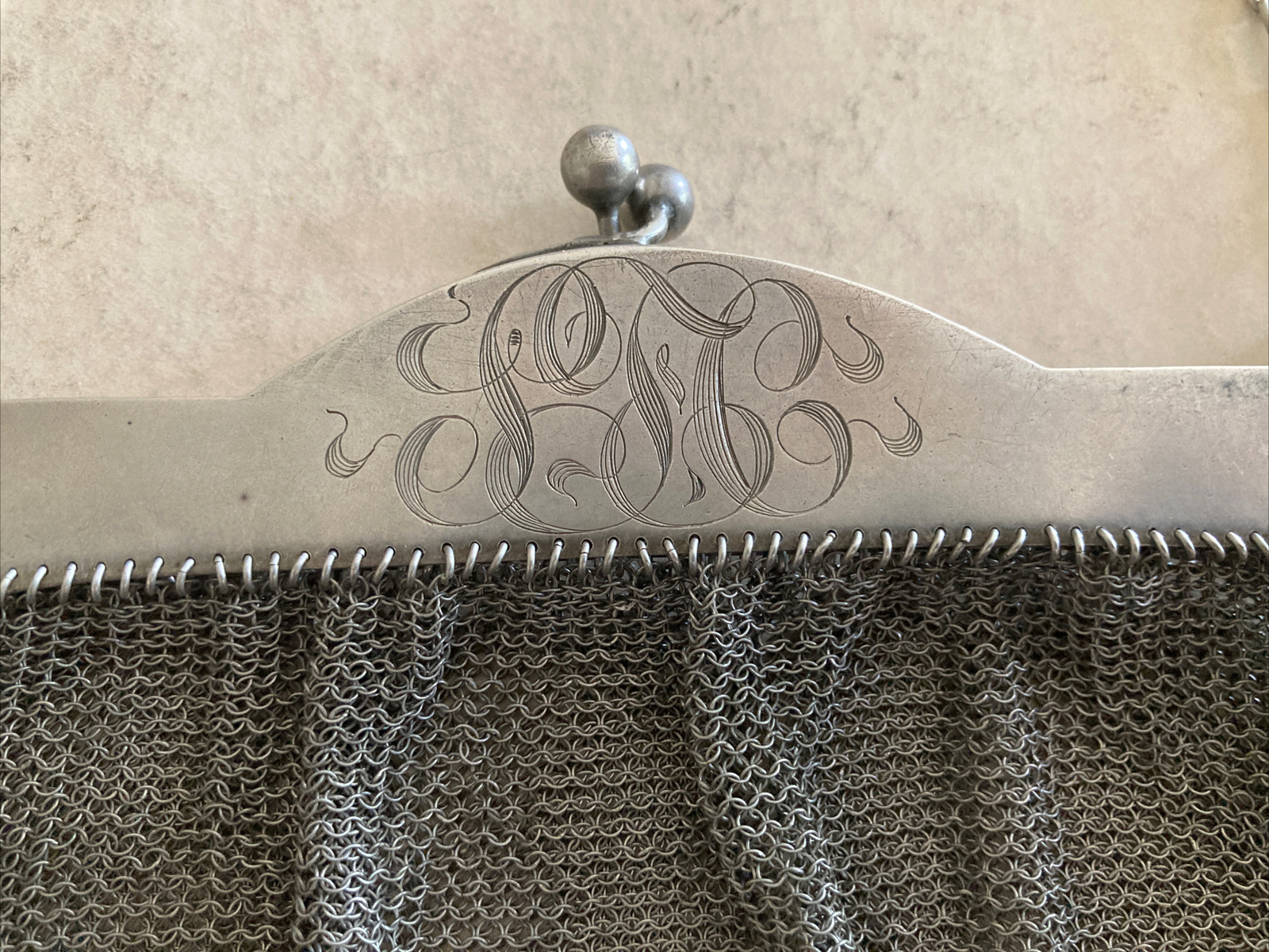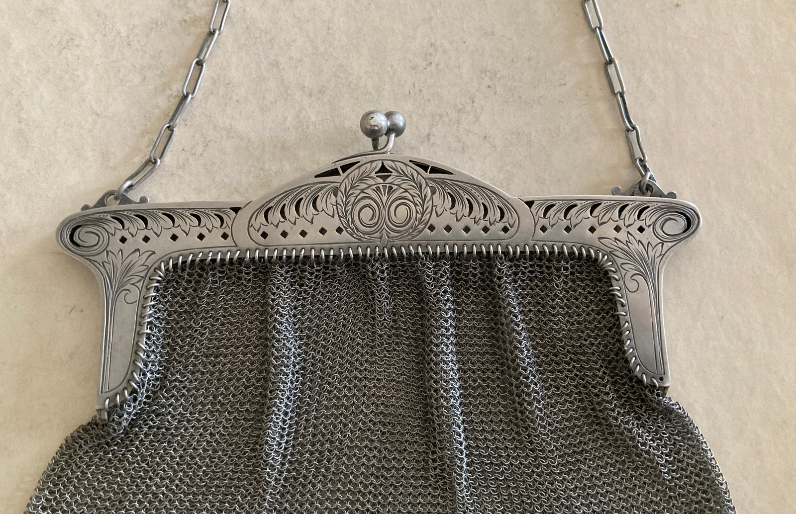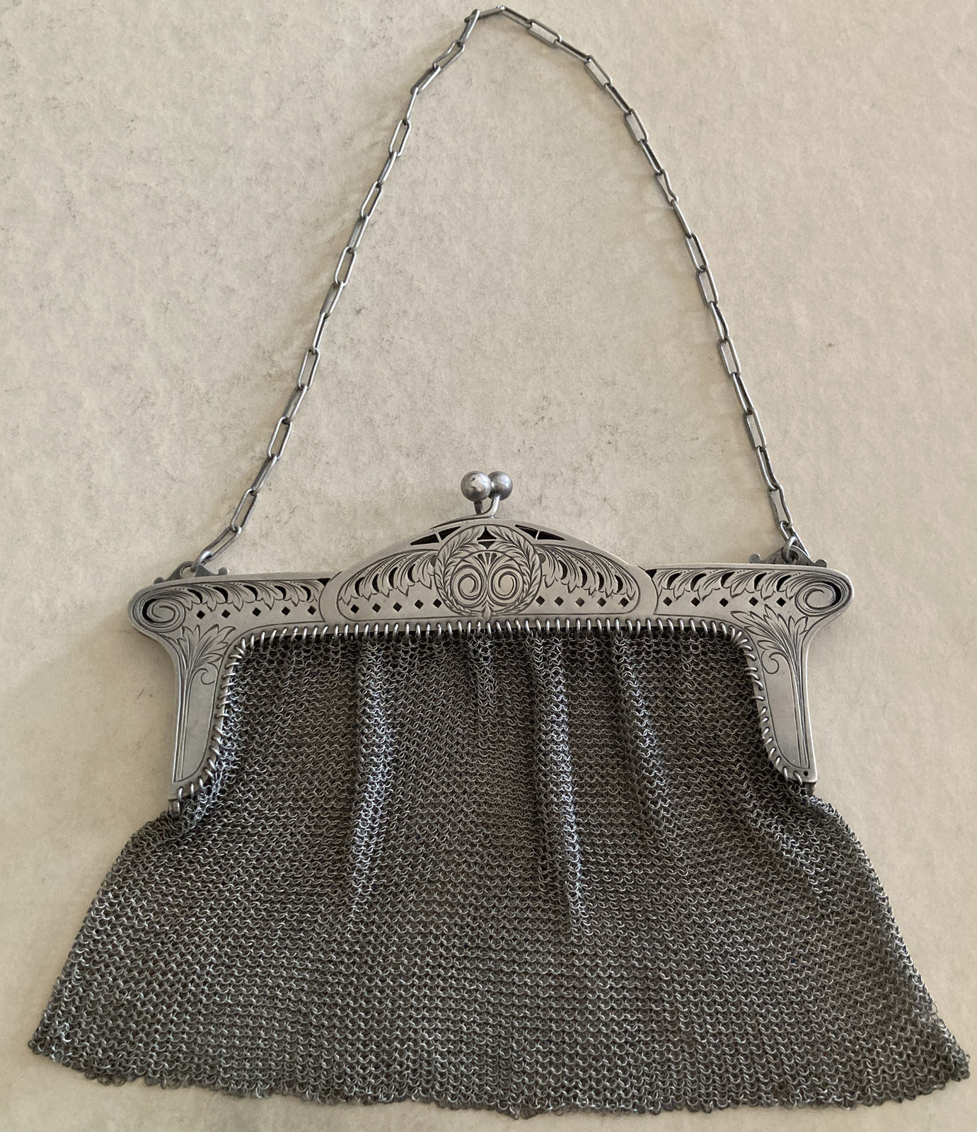 Great Antique Victorian Sterling Silver Mesh Women Purse Etched Decoration 200gr