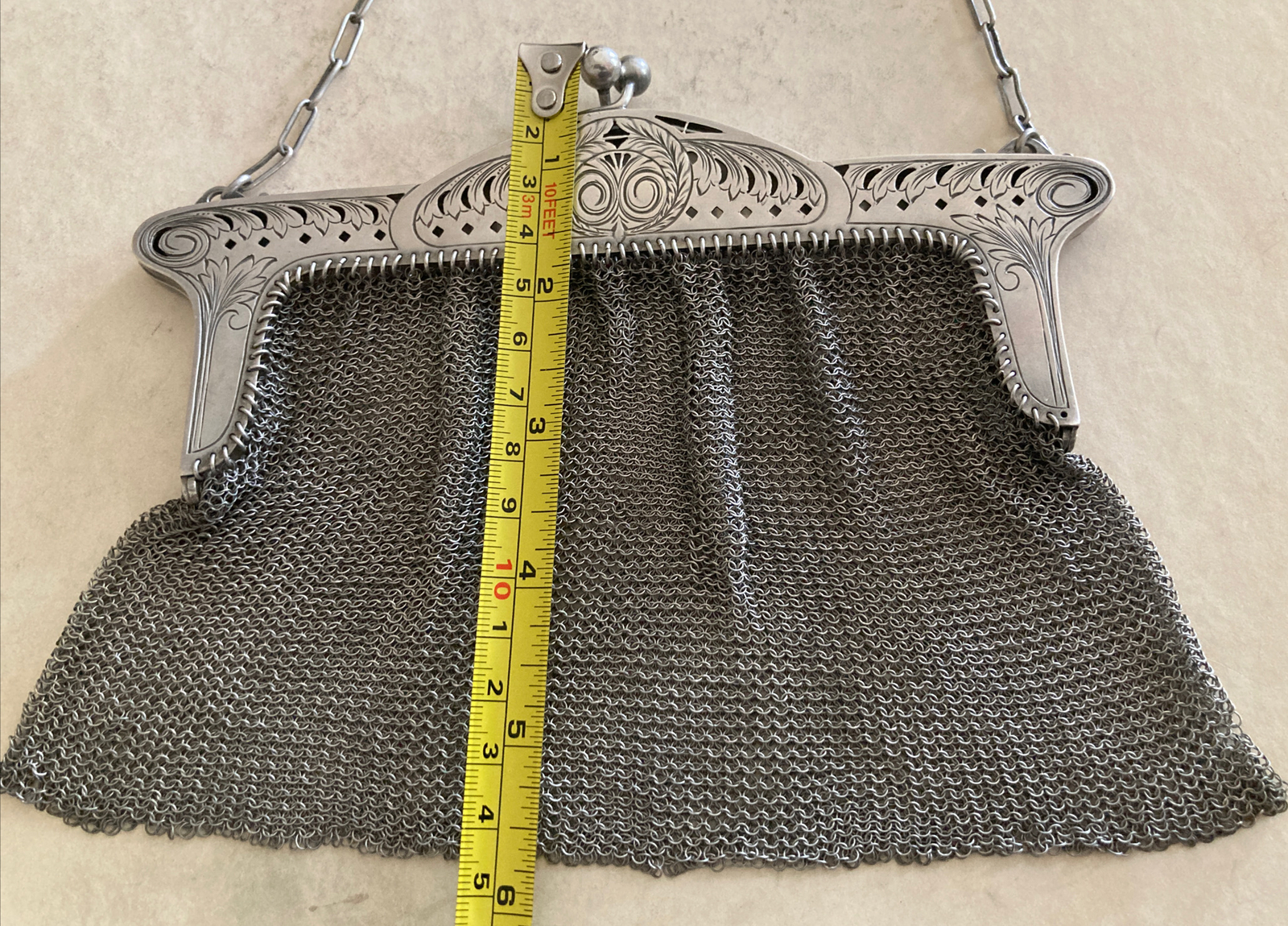 как выглядит Great Antique Victorian Sterling Silver Mesh Women Purse Etched Decoration 200gr фото