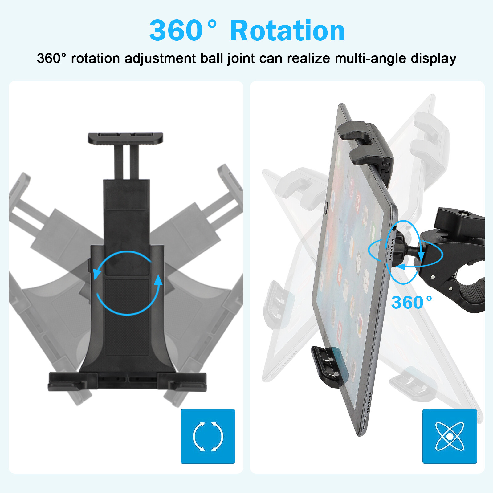 4.7-12.9 Tablet Phone Holder for Mic Stand Bike Treadmill Motorcycle iPad Mount