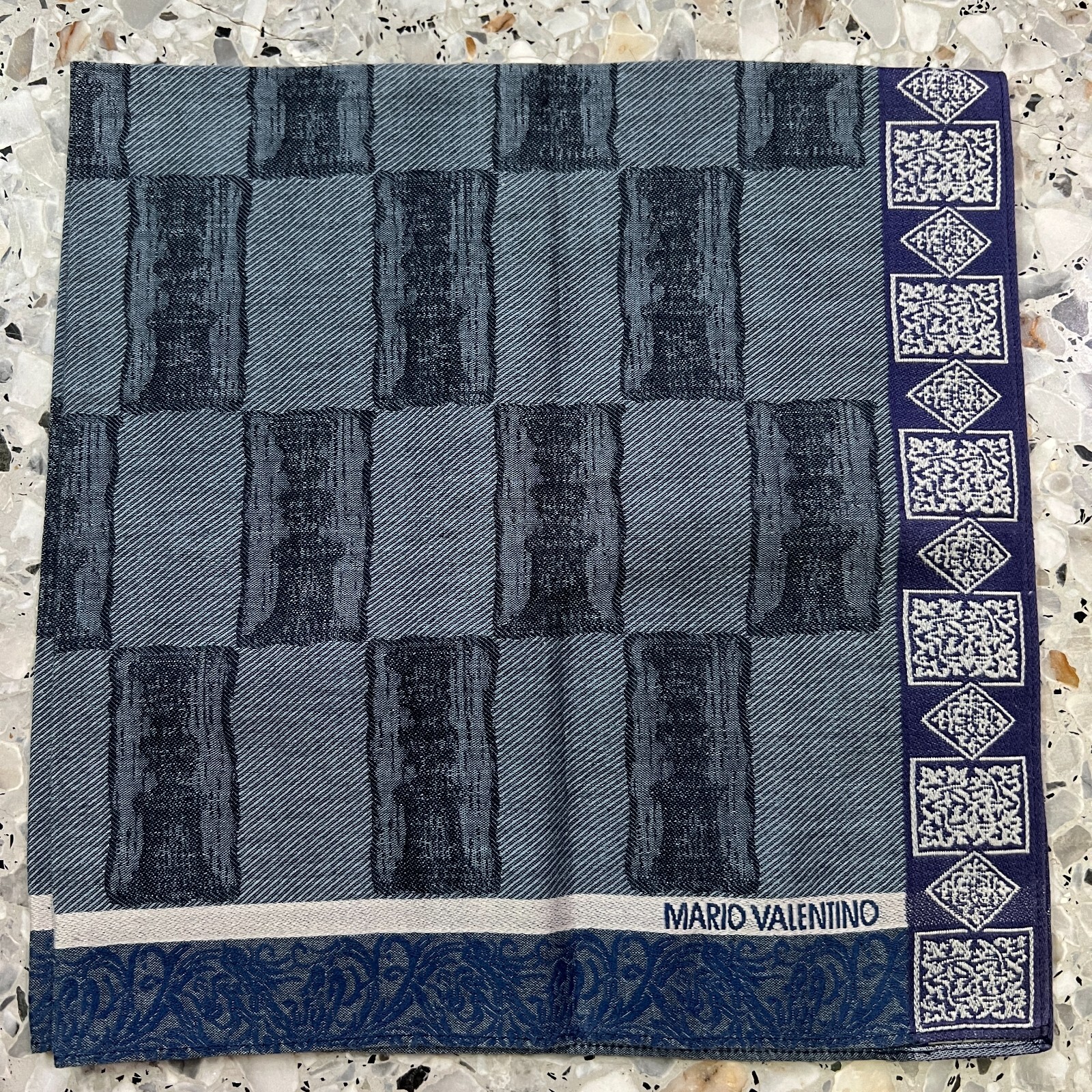 ART GEOMETRICS BLUE MEN HANDKERCHIEF VINTAGE COTTON POCKET CLASSIC SQUARE 18