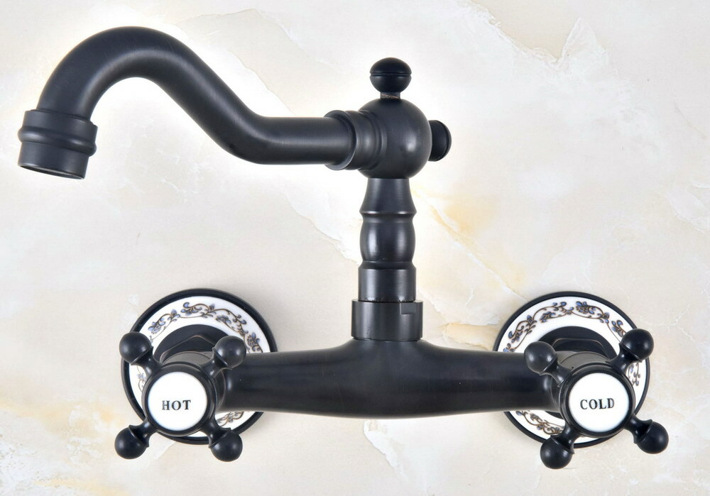 Oil Rubbed Bronze Bathroom Wall Mounted Faucet Bathroom Basin Sink Mixer Tap