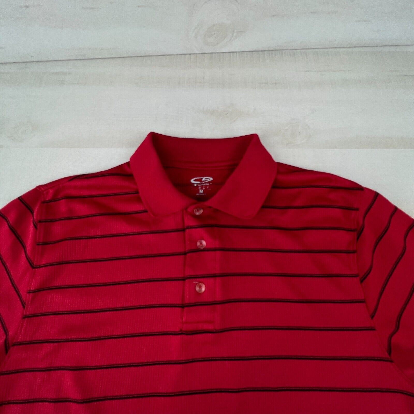как выглядит Champion Mens Polo Shirt Medium Red Striped Short Sleeve Knit Casual фото