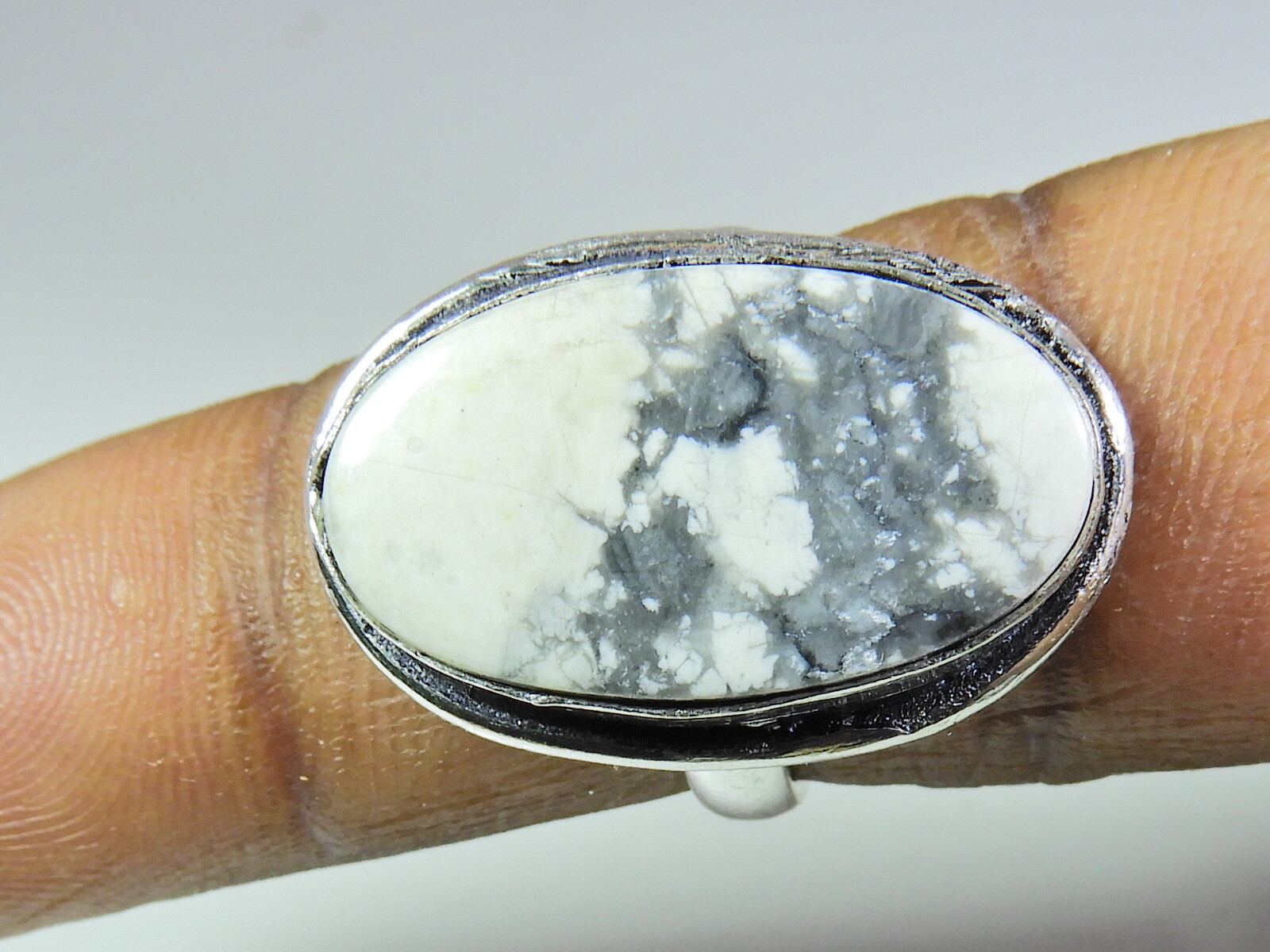 Natural Howlite 925 Solid Sterling Silver Ring Size US-6