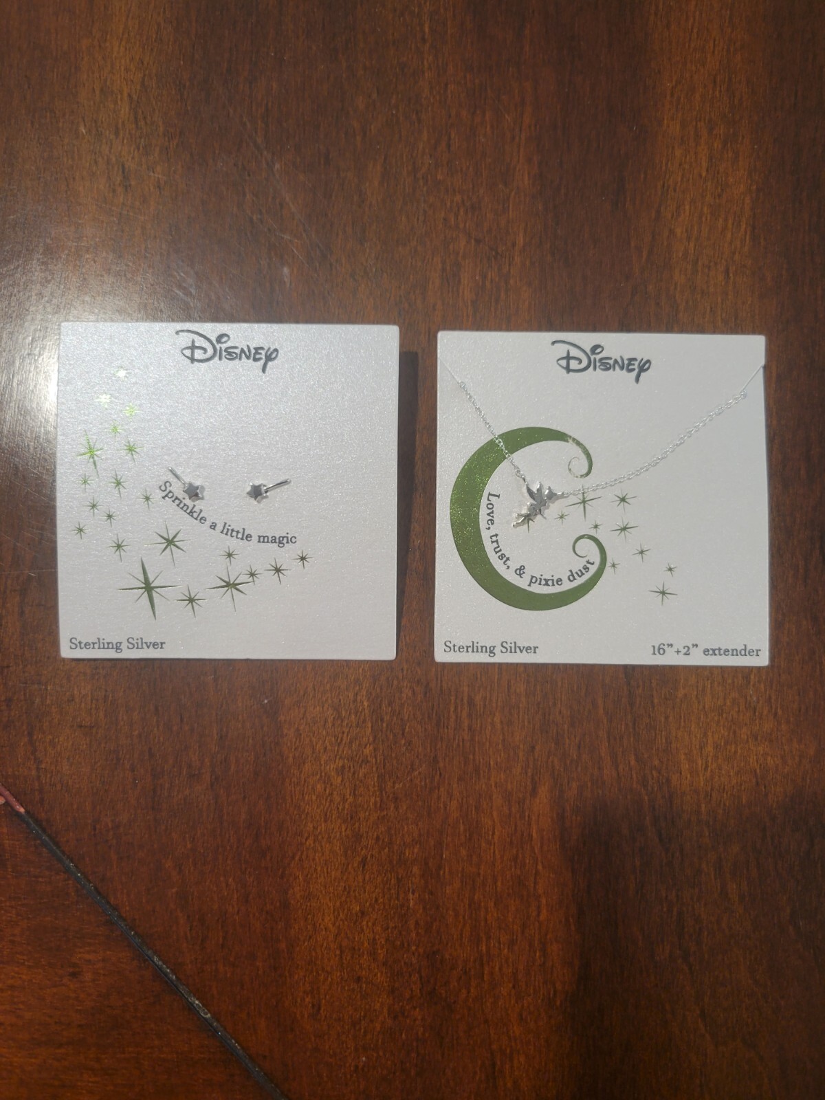 Disney 925 Sterling Silver Tinkerbell Necklace Magic Wand Earrings - New Wow