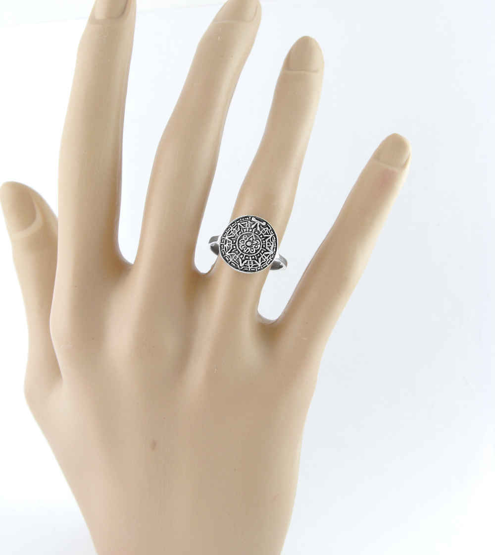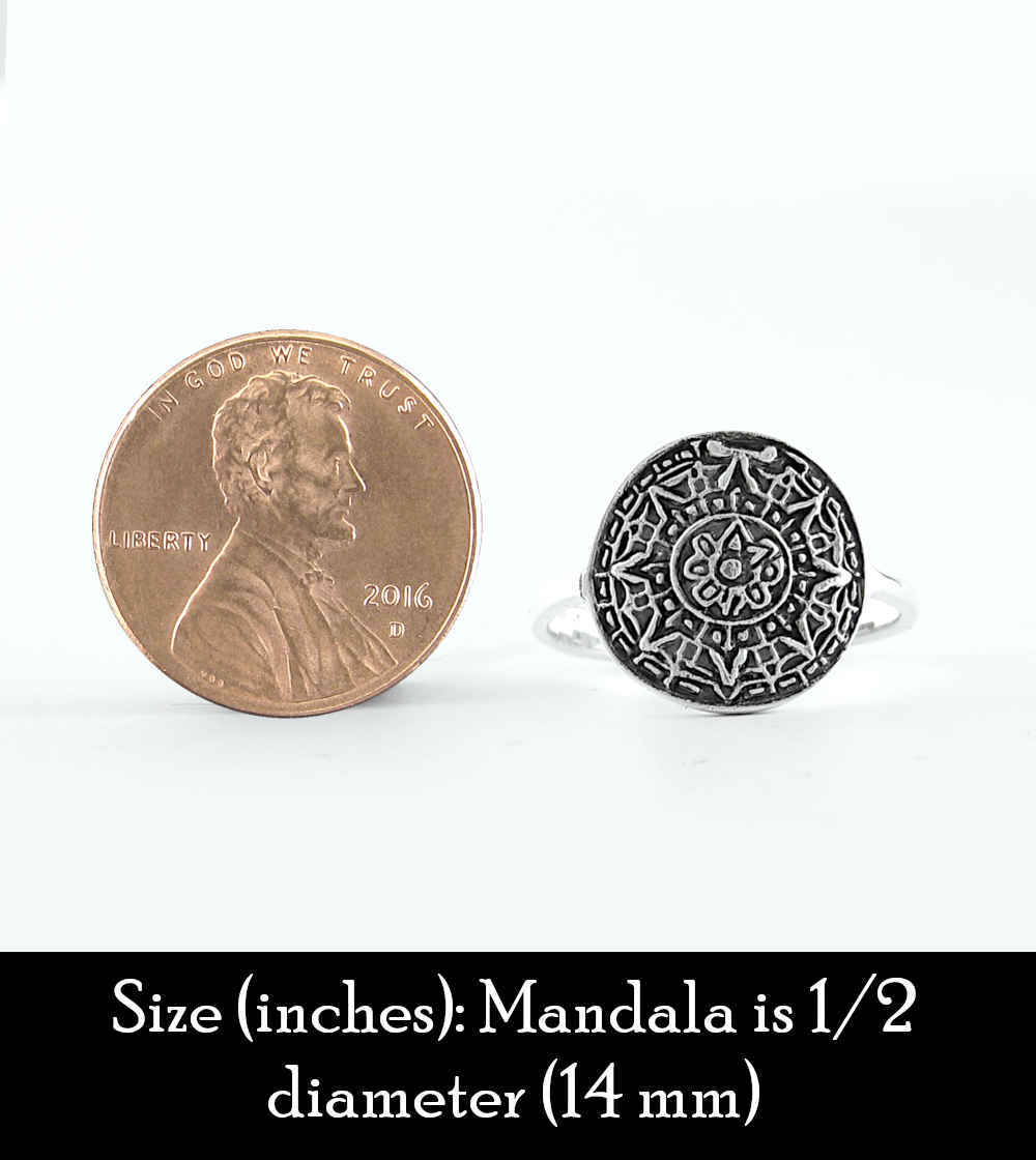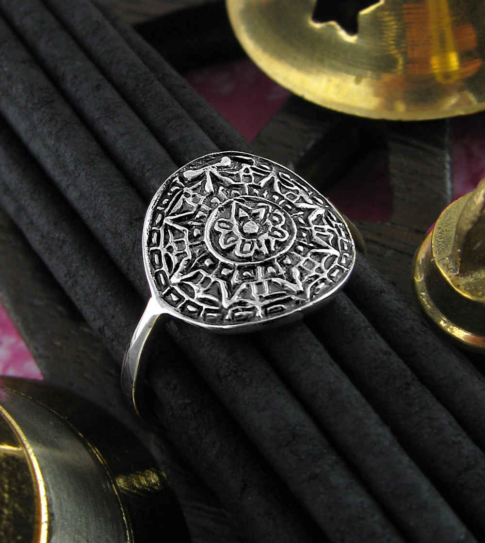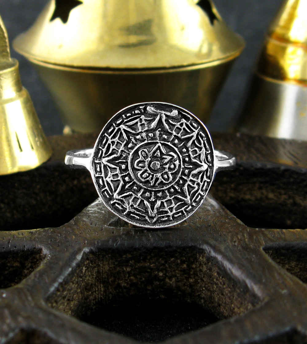 Round Mandala Oxidized Ring Meditation Sacred Geometry wh046