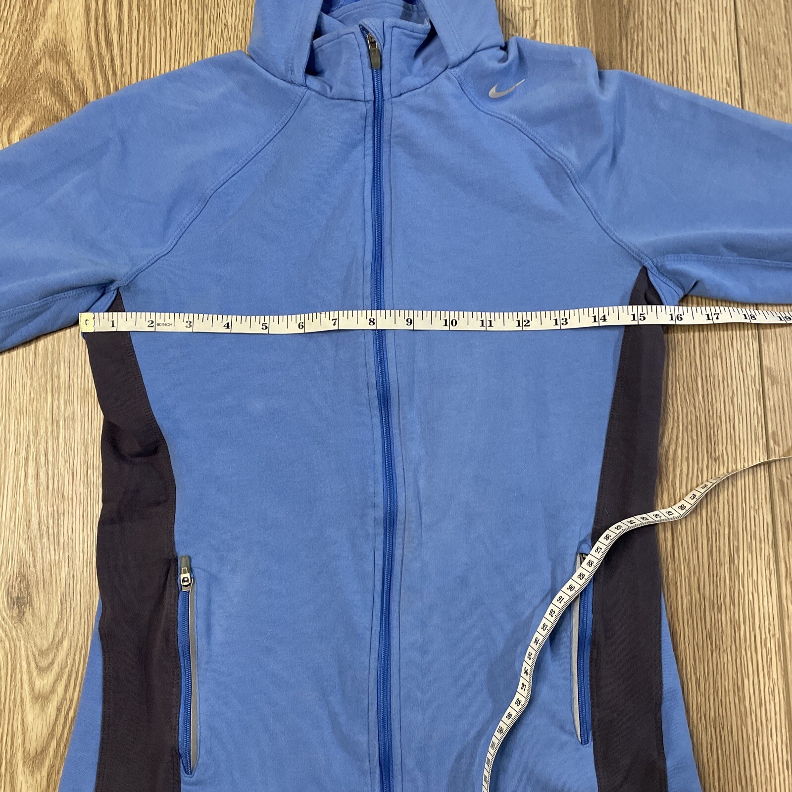 Nike Running Dri Fit Jacket Womens Small Blue Full Zip Mock Neck Hooded