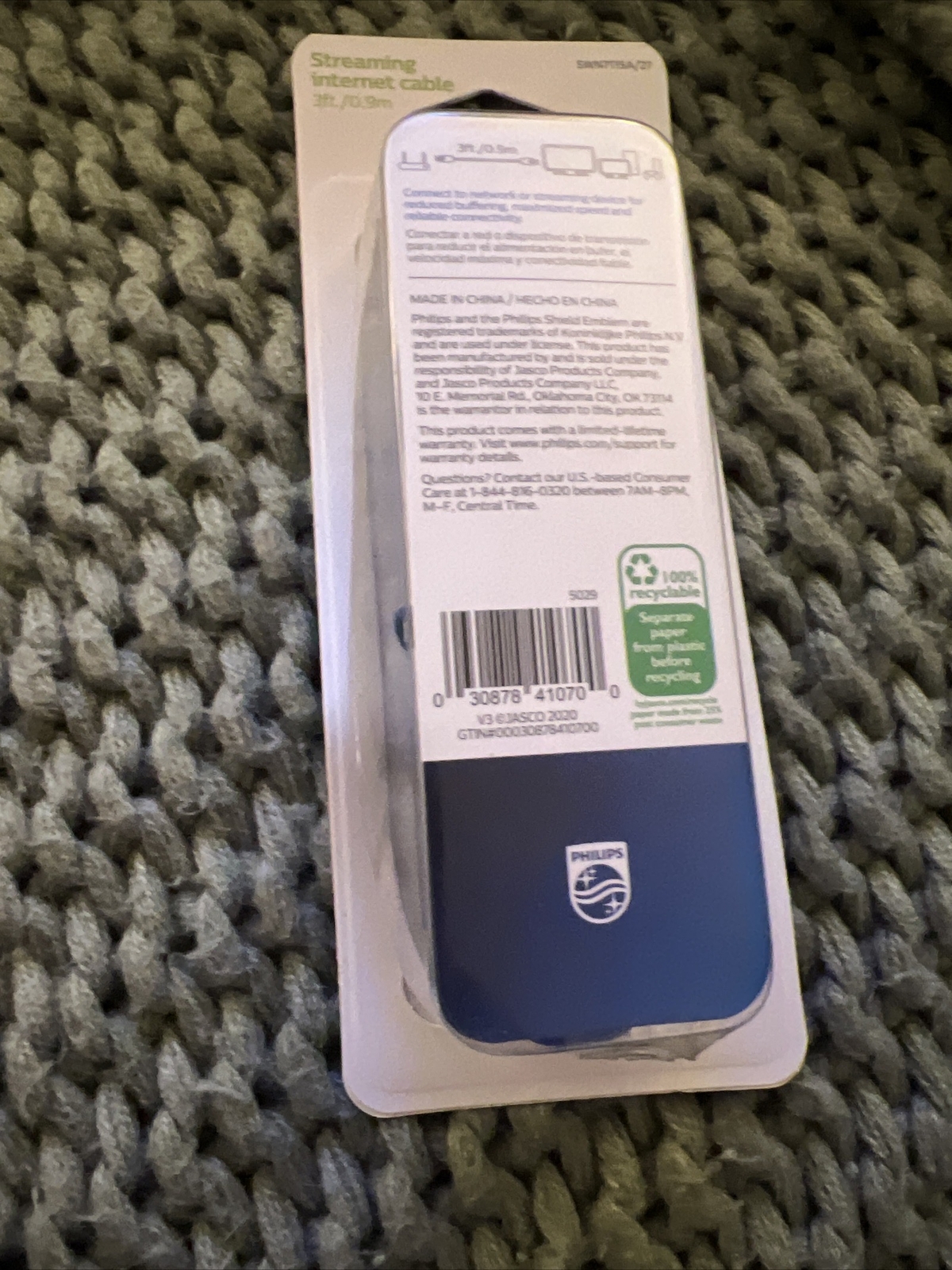 Philips Elite Cat6 Streaming 3ft Ethernet Cable - Blue, High-Speed Internet