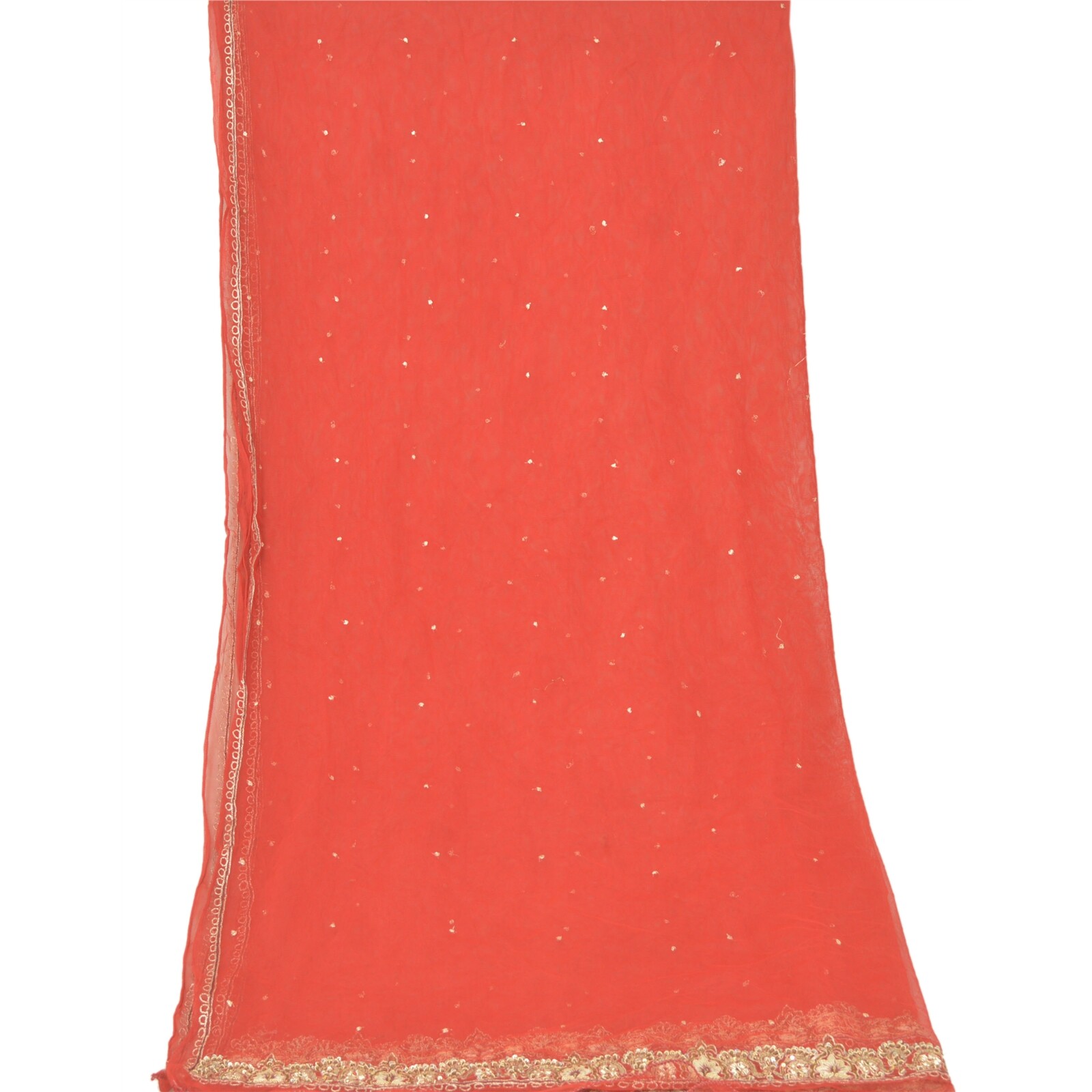 Sanskriti Vintage Dupatta Long Stole Net Mesh Red Veil Hand Beaded Scarves