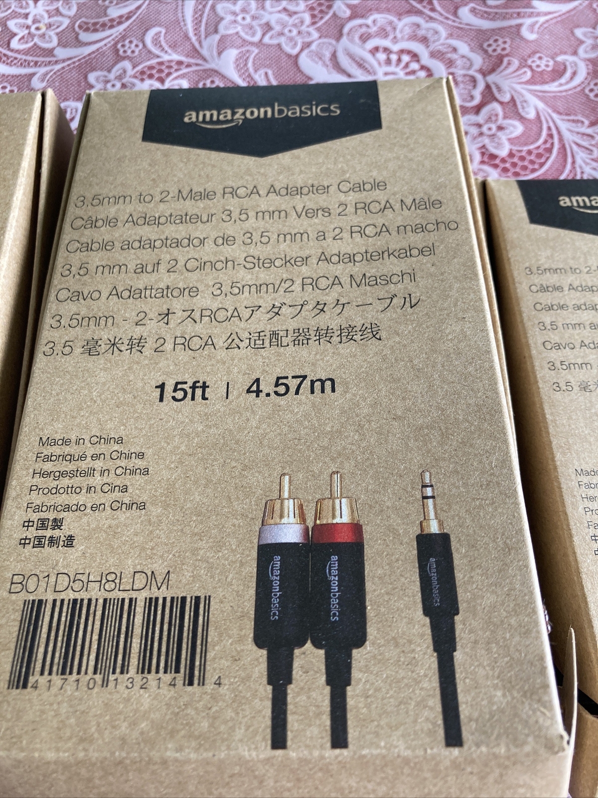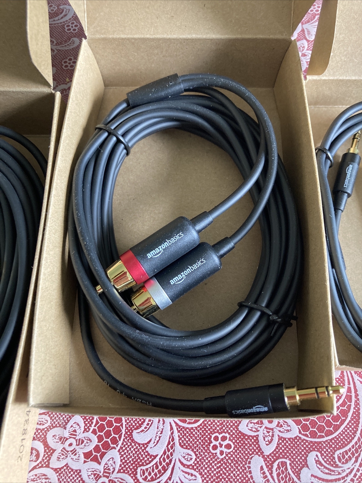 Lot 3 Amazon basics 3.5 mm To 2-male RCA adapter cable 25, 15 4 Ft. NIB
