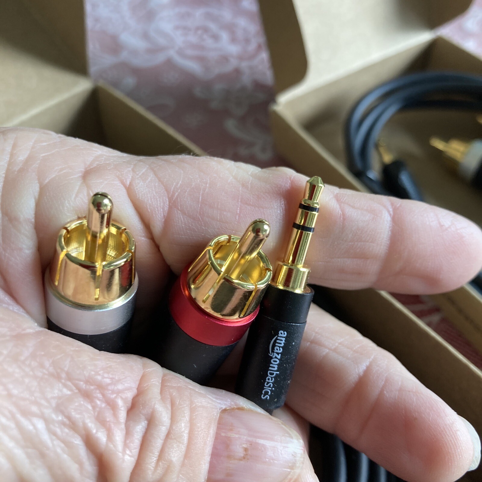 как выглядит Lot 3 Amazon basics 3.5 mm To 2-male RCA adapter cable 25, 15 4 Ft. NIB фото