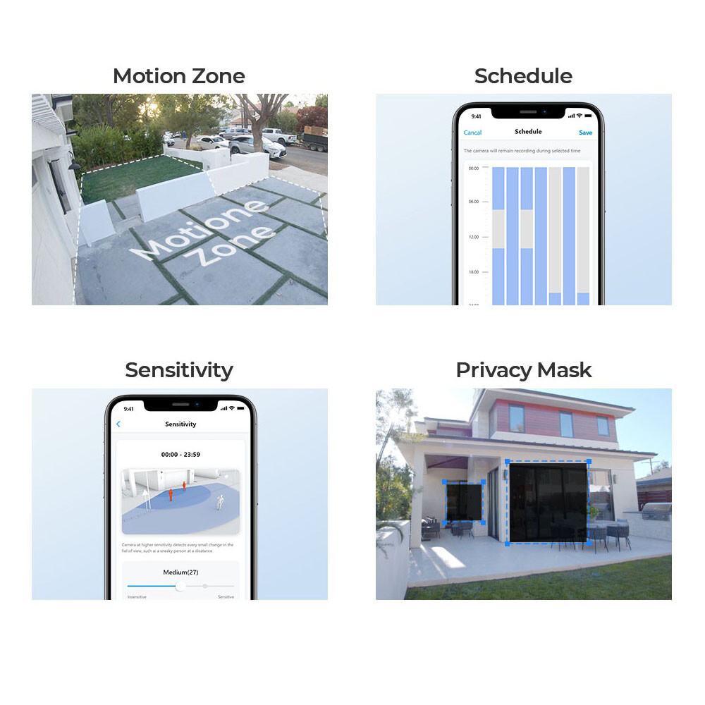 Особенности: Motion Detection, Audio Recording, Time Lapse Videos, IP66, Outdoor/Weatherproof, Smart Person Vehicle Pet Detection, Free APP, H.265, IR Night Vision