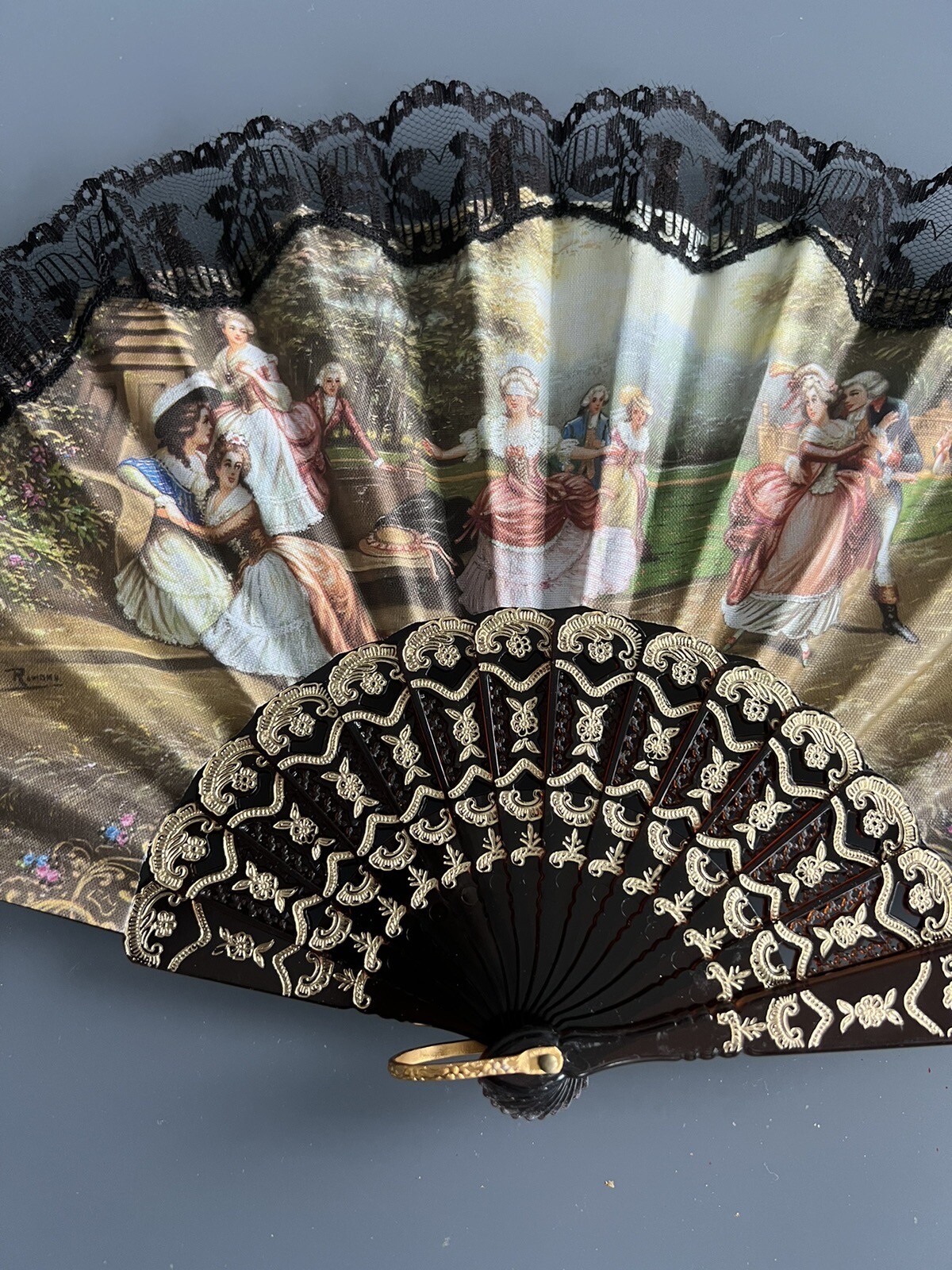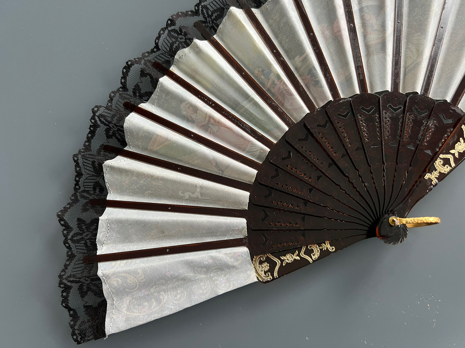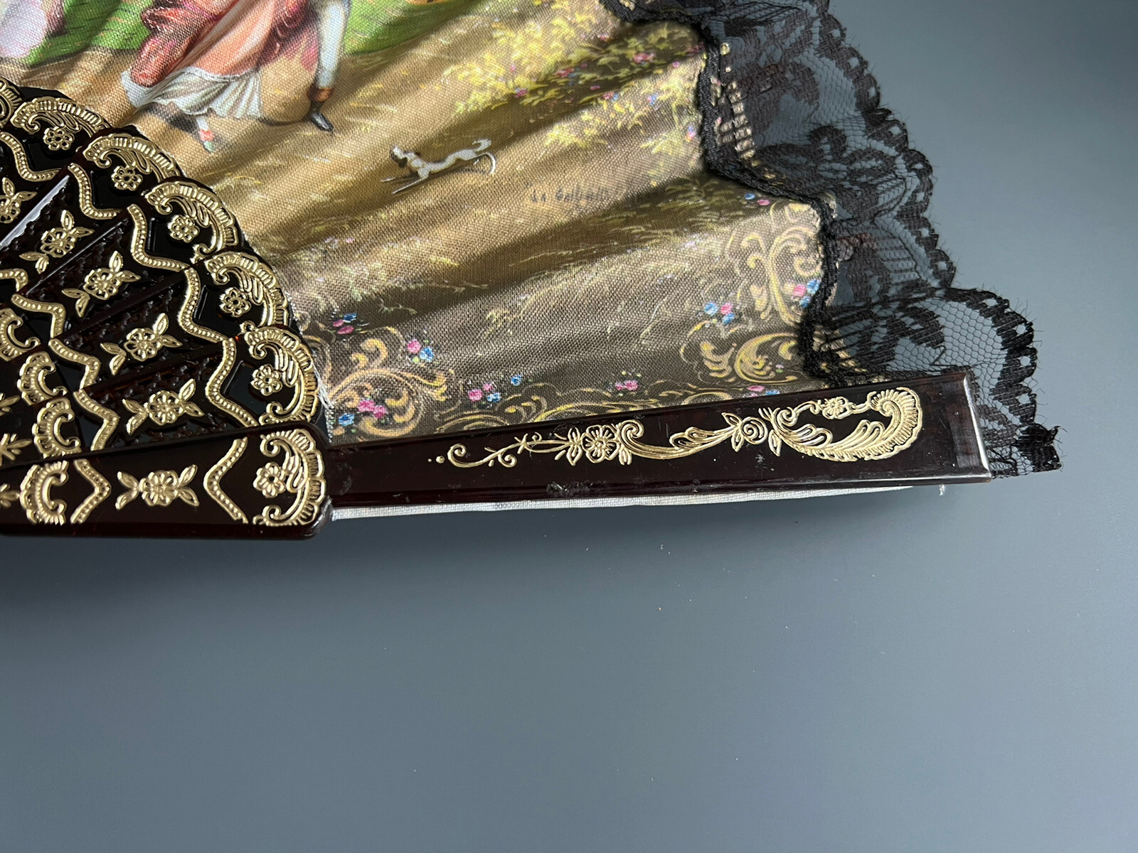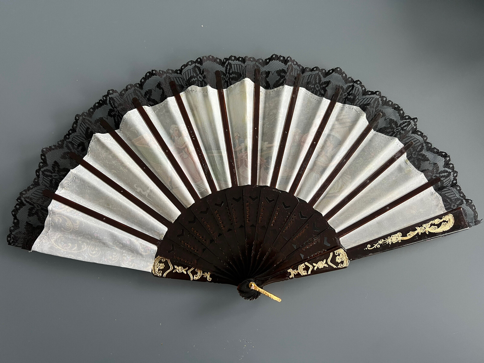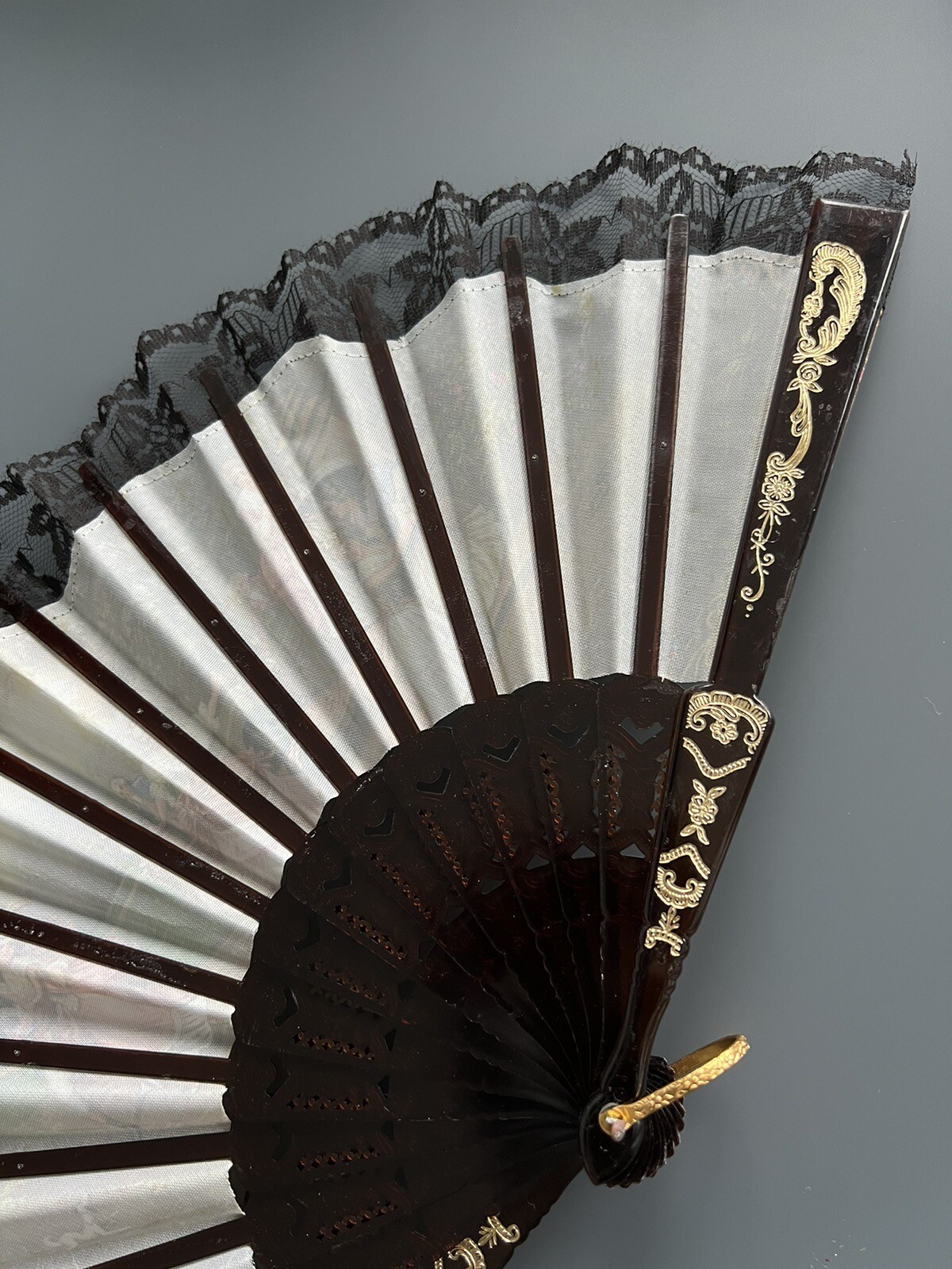 как выглядит Vintage ABANICOS Decorative Folding Hand Fan With Lace Edging фото