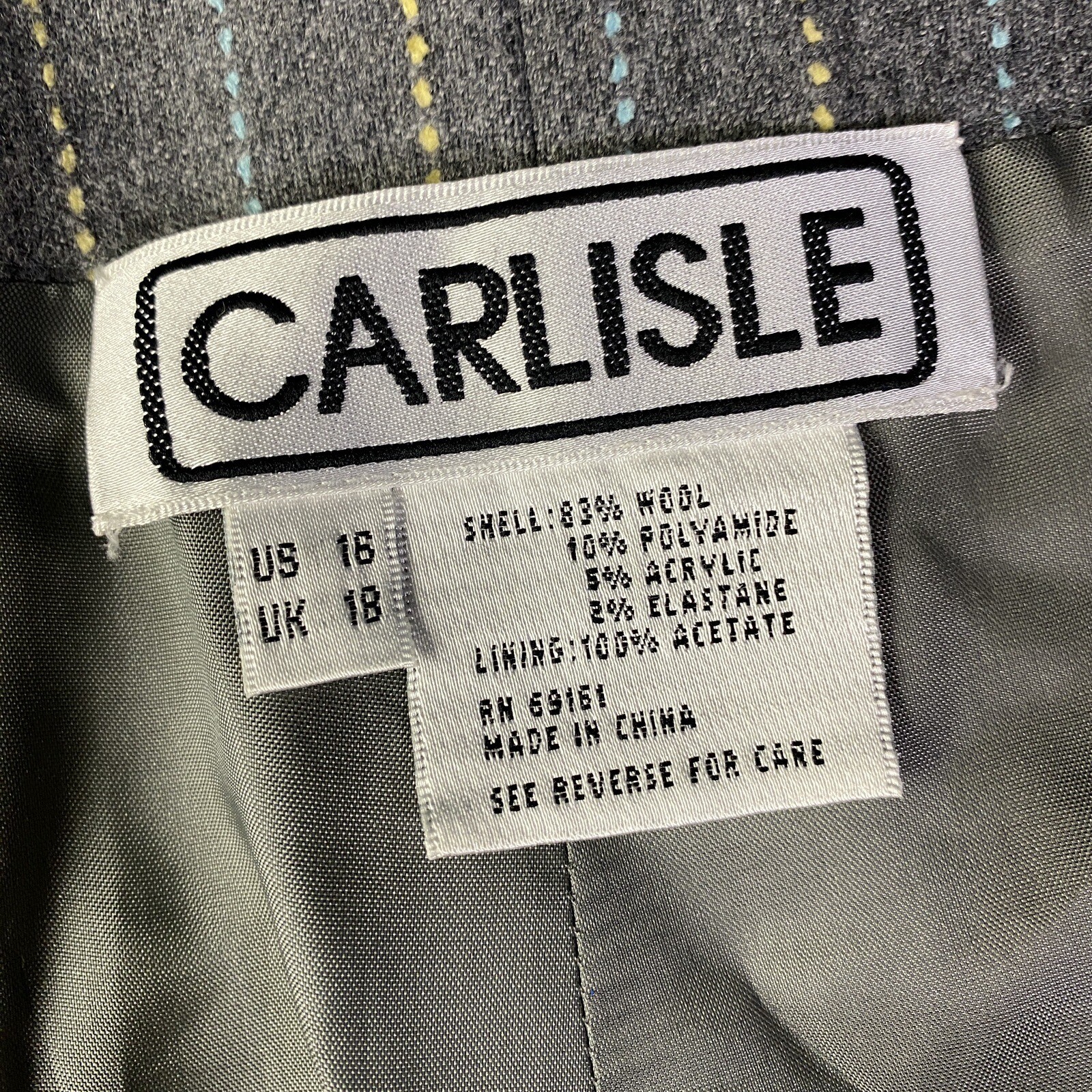 как выглядит Vintage Carlisle Gray Yellow Blue Pinstripe Wool Classic Trouser Pants Size 16 фото