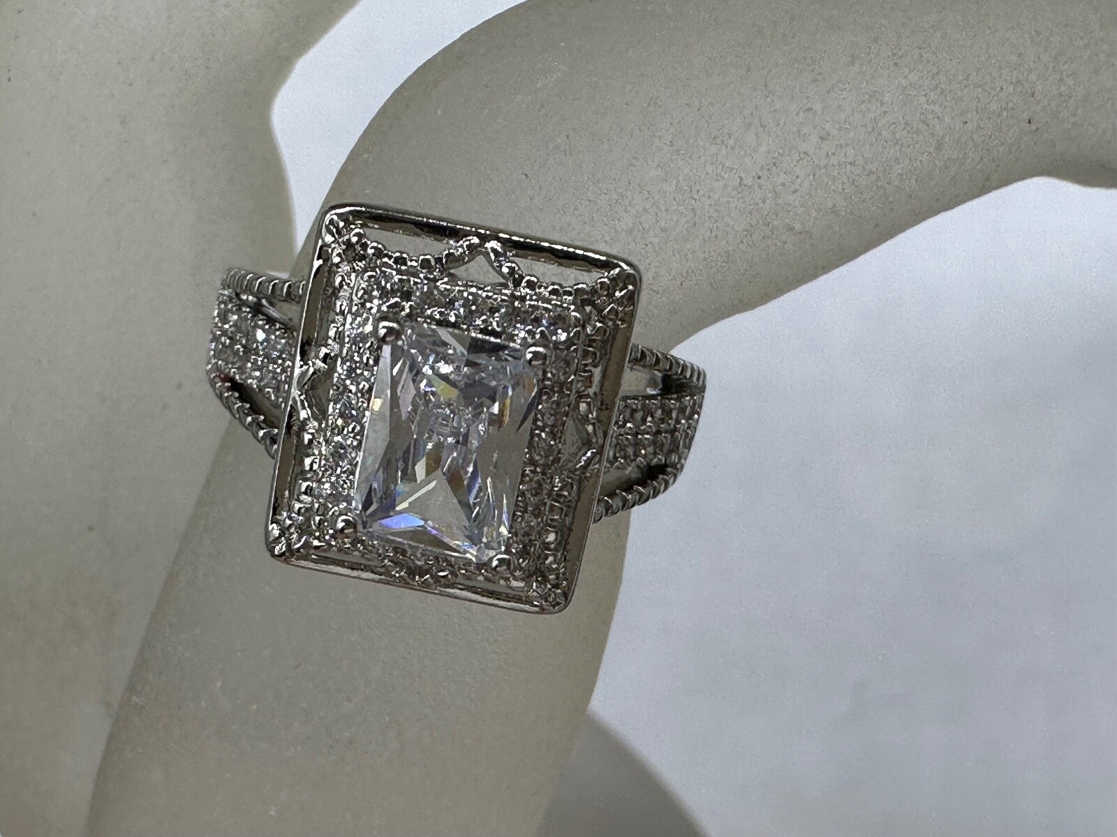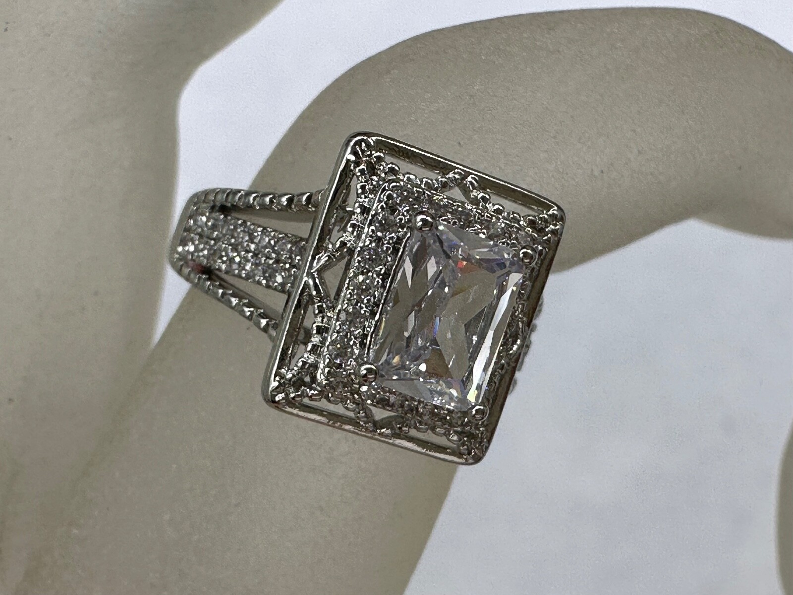как выглядит STERLING SILVER RADIANT SOLITAIRE CZ ENGAGEMENT STYLE RING SIZE 6 фото