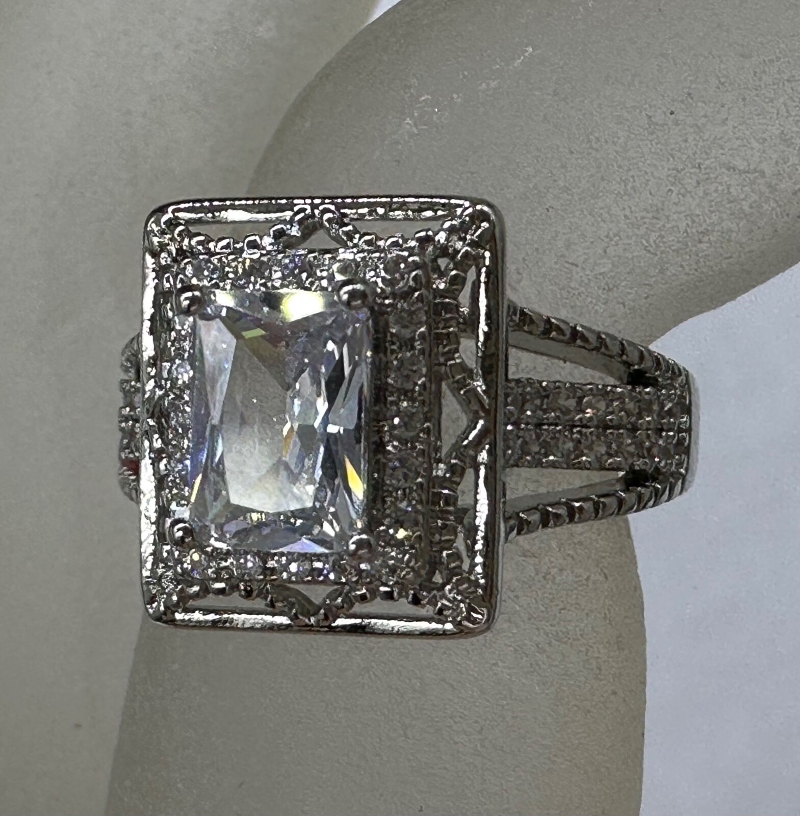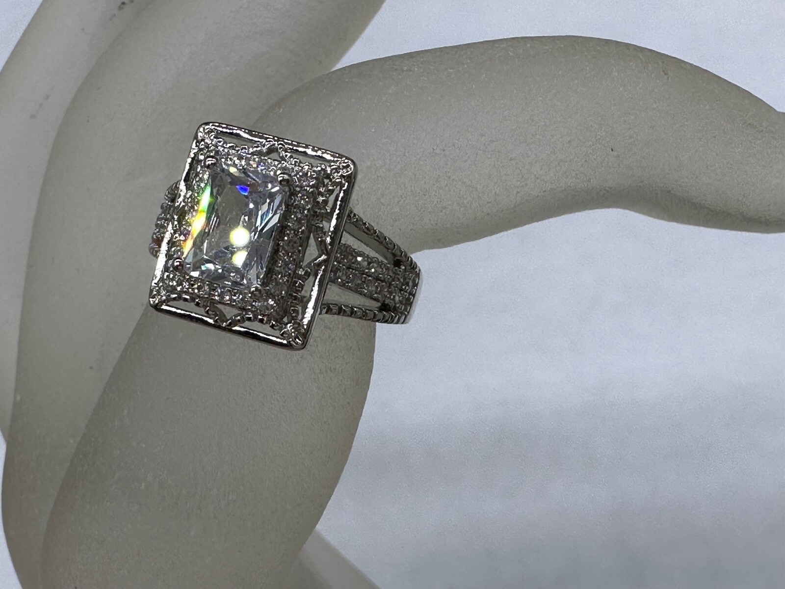STERLING SILVER RADIANT SOLITAIRE CZ ENGAGEMENT STYLE RING SIZE 6
