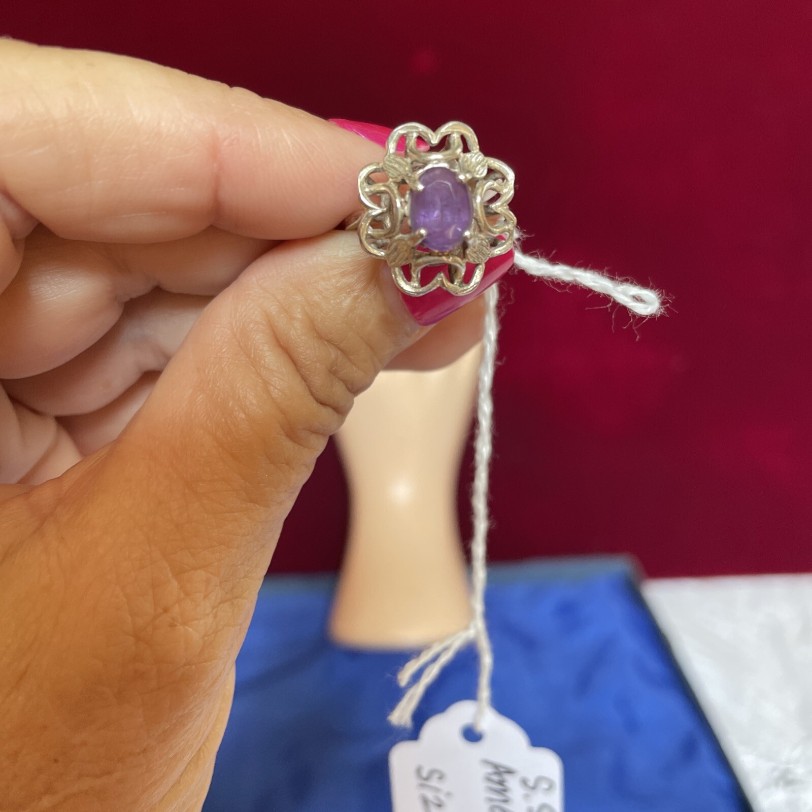 как выглядит Vintage Sterling Silver Amethyst Ring Size 6 фото
