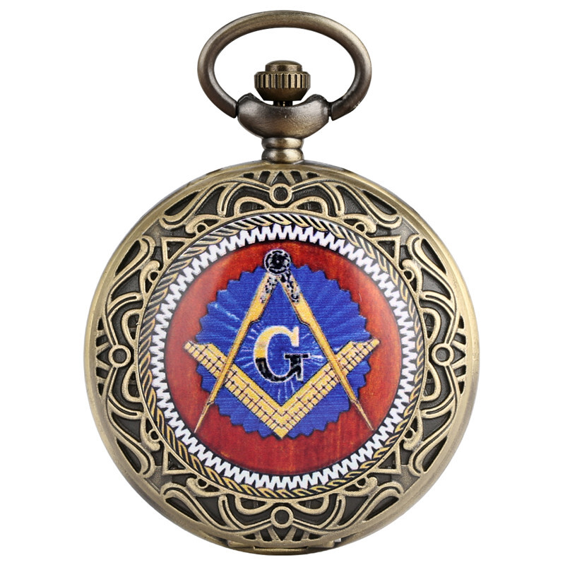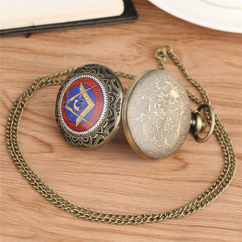 Bronze Masonic Freemasonry Chrome Square and Compass Mason Quartz Pocket Watch