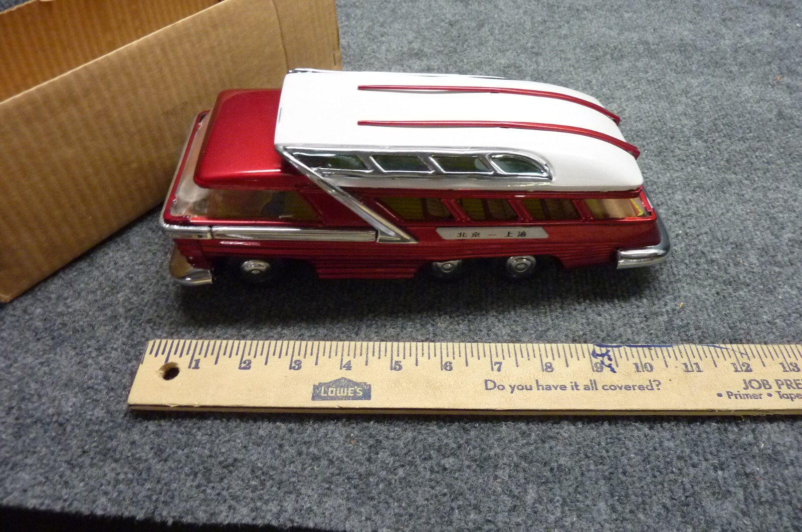 как выглядит B/O China Tin Toy Bus Mystery Action ME083 Battery Op WORKS w/BOX фото