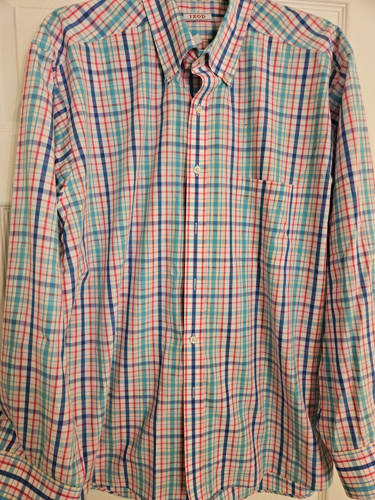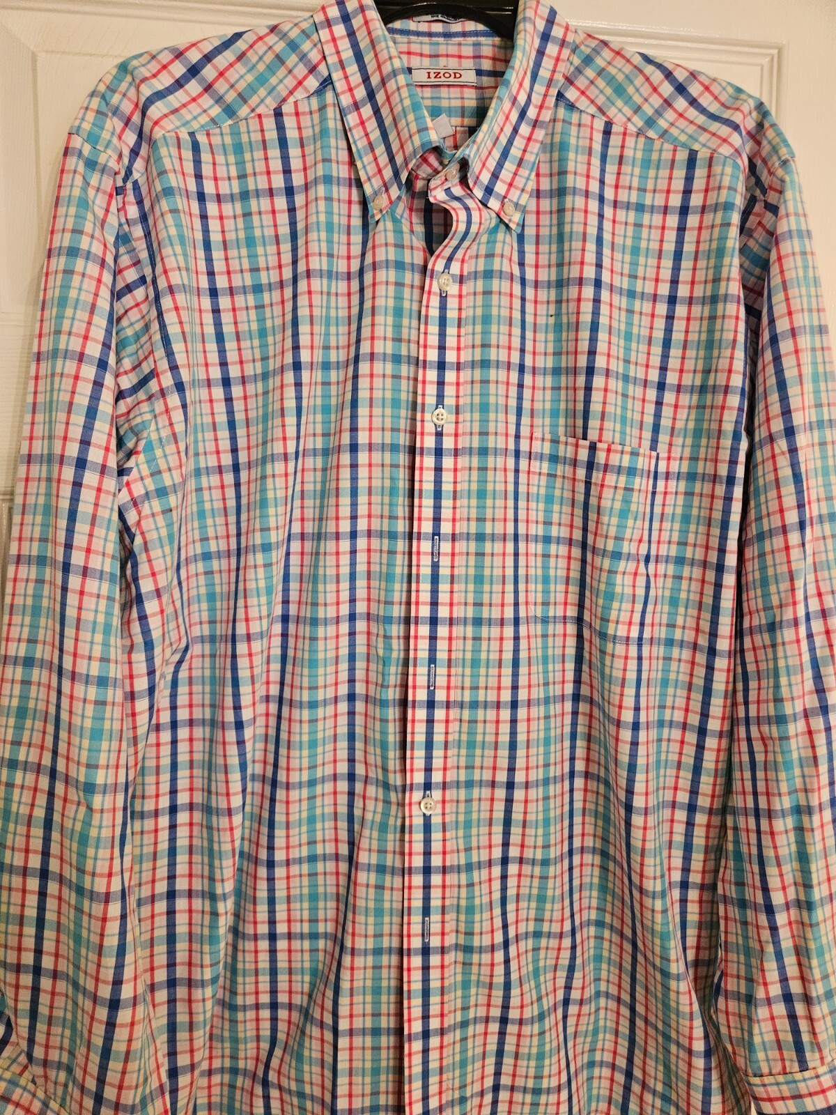 IZOD Men's Button Up Long Sleeve Plaid Dress Shirt Size 34/35 XL Fit Non Iron