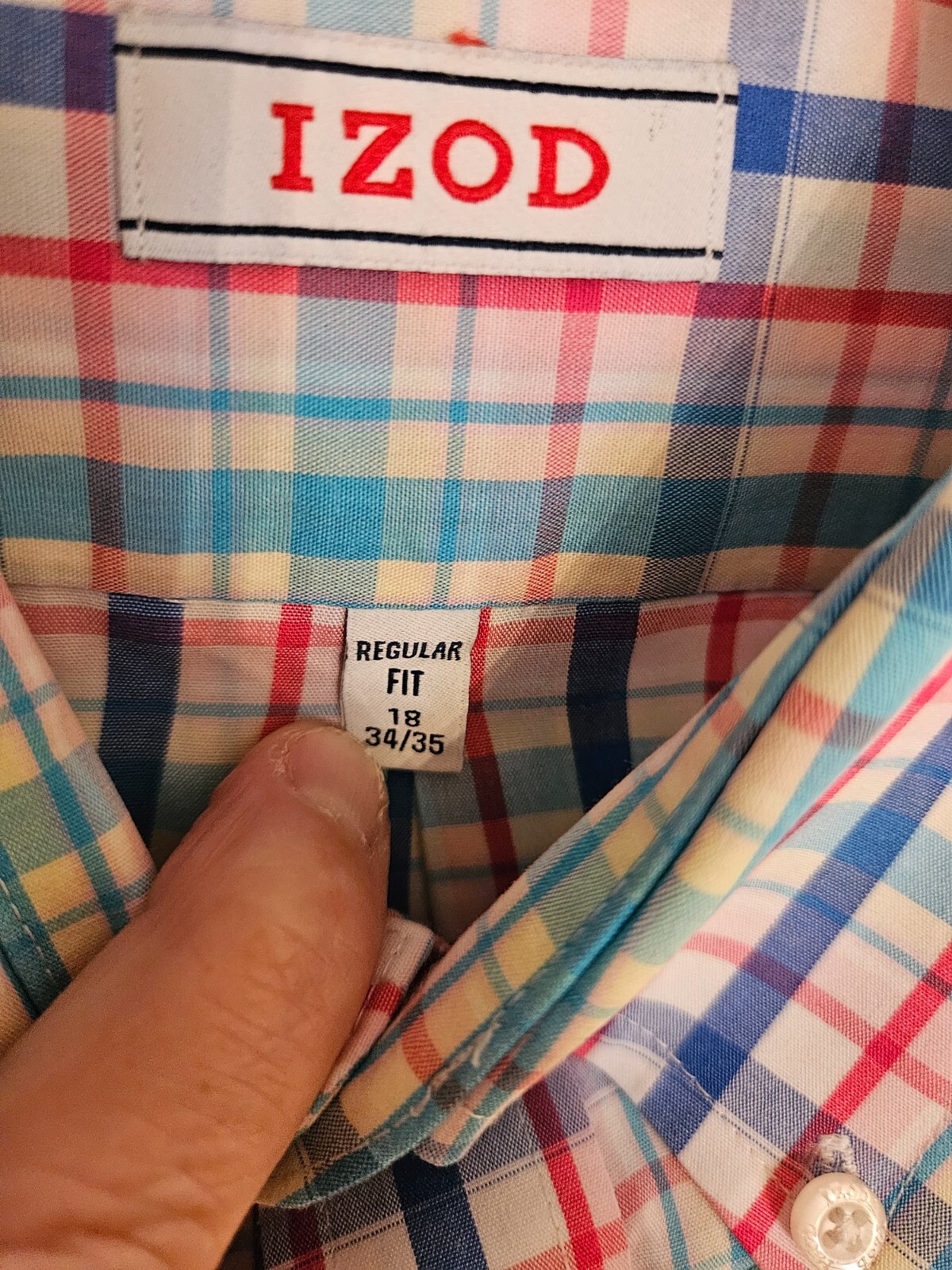 как выглядит IZOD Mens Button Up Long Sleeve Plaid Dress Shirt Size 34/35 XL Fit Non Iron фото