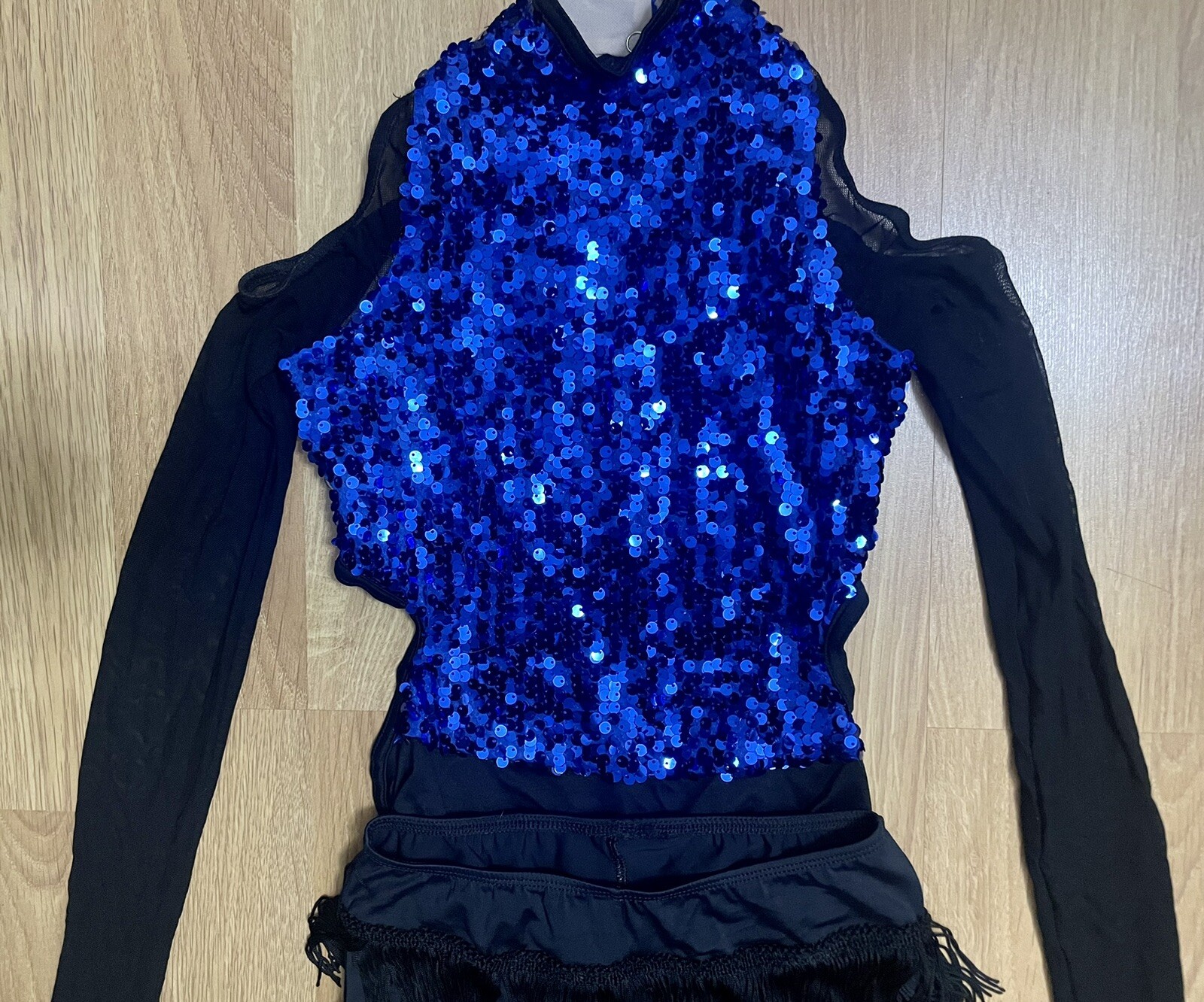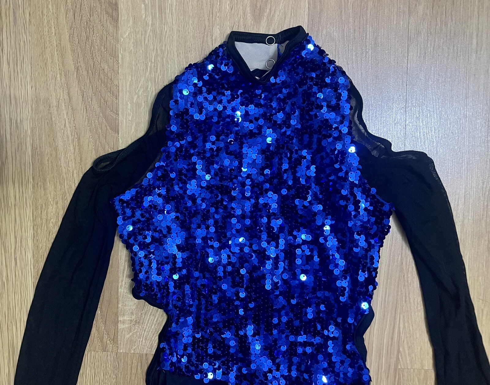 как выглядит Blue Sequin Black Mesh/Fringe Flapper Weissman Dance/Halloween Med/MC/10-12 фото