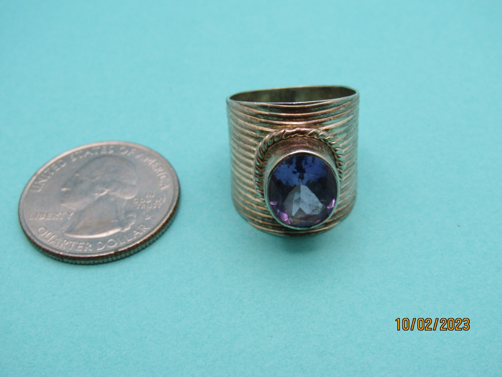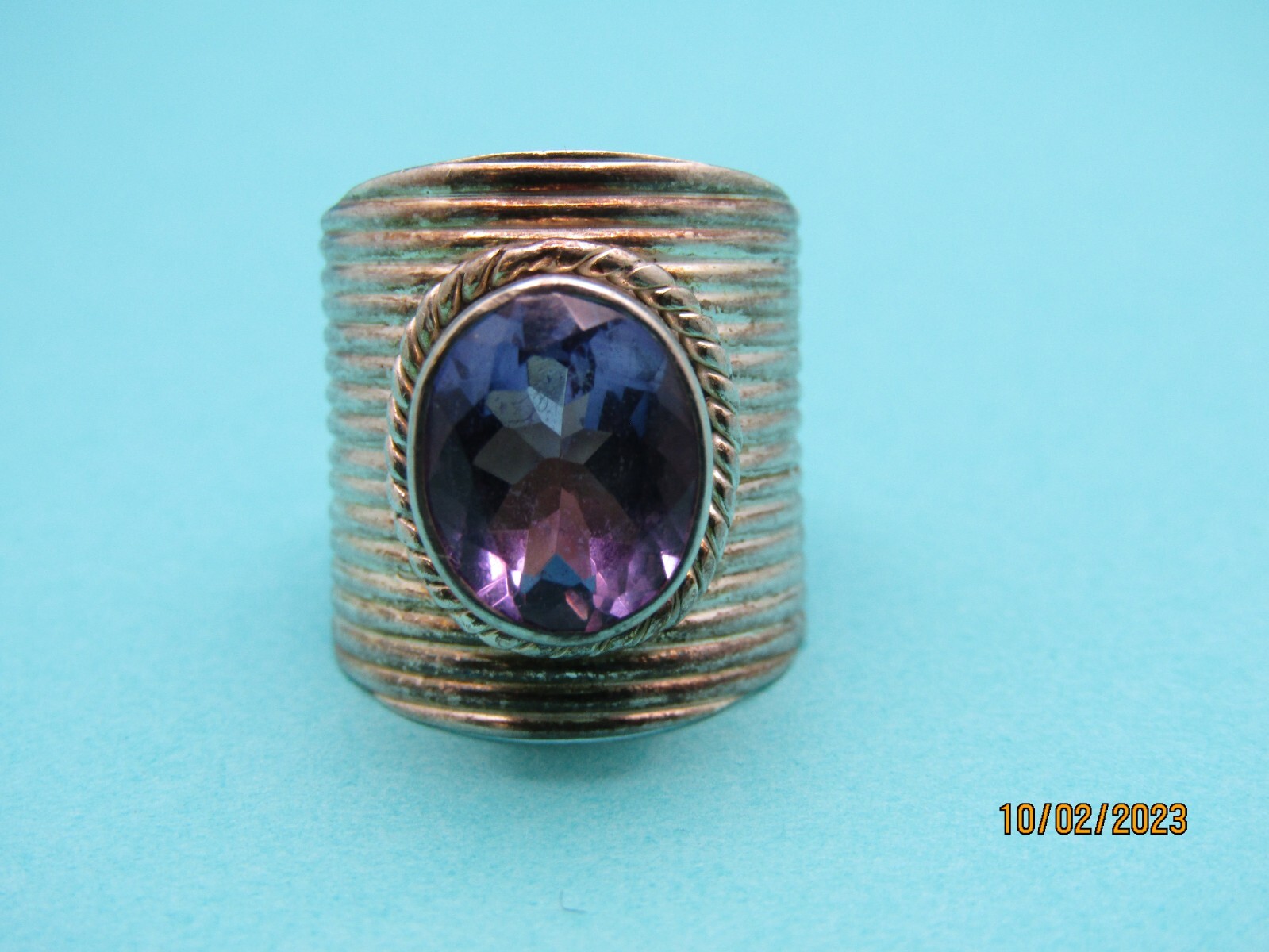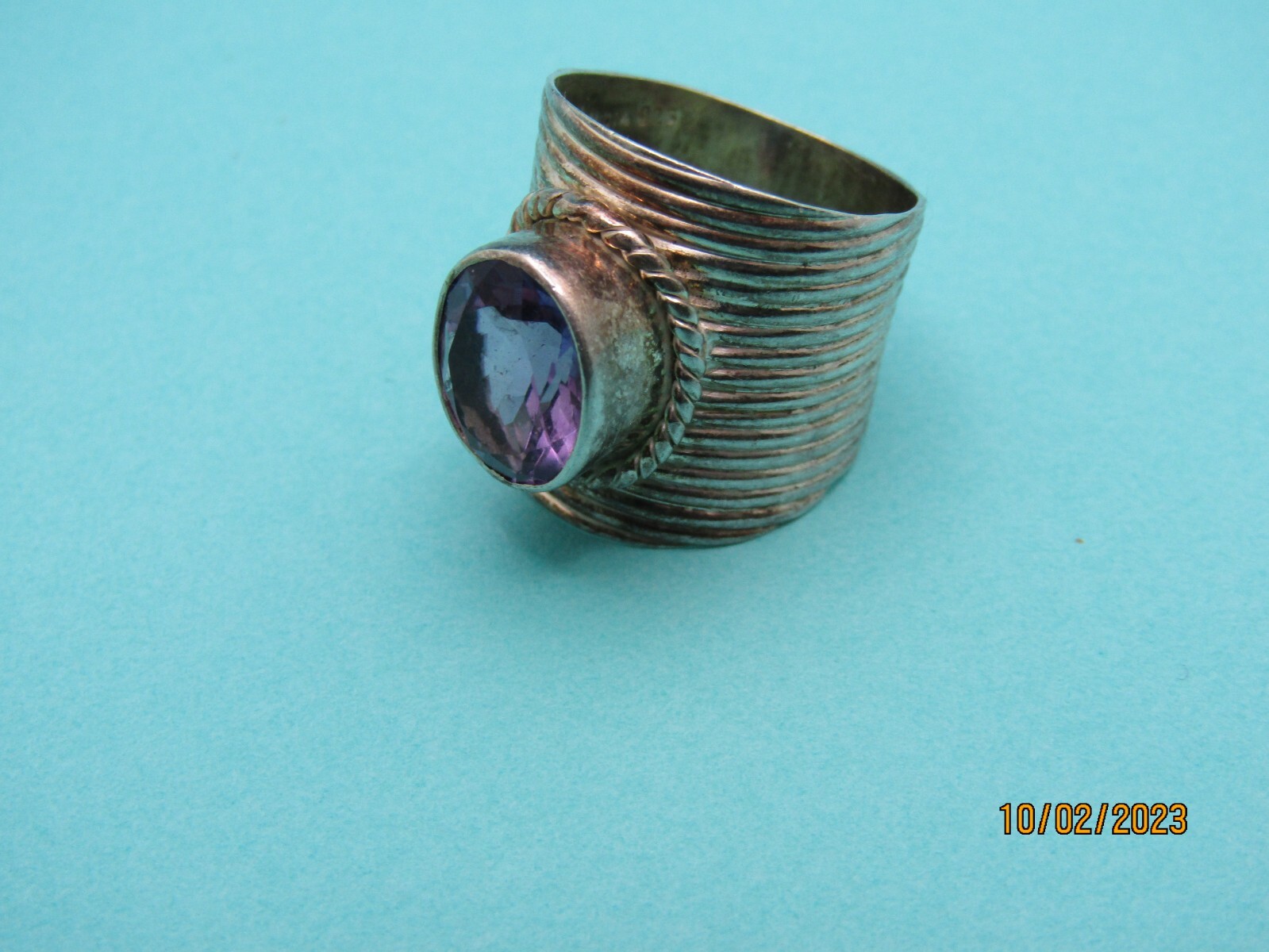 как выглядит Beautiful Sterling Wide Amethyst CZ Stone Ring 7 PTI India 925 C406 фото