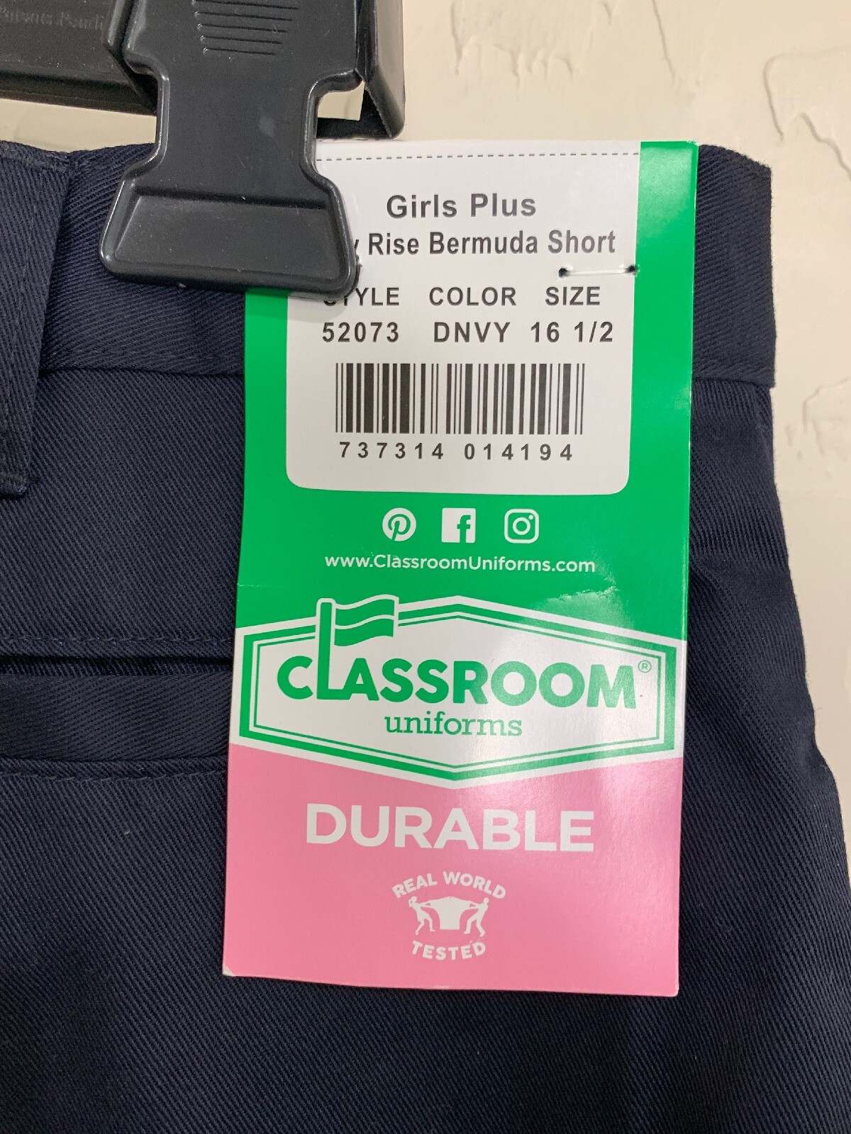 Classroom Big Girls Kids Bermuda Short Navy 16.5 Uniform Elastic Waist NWT 5887