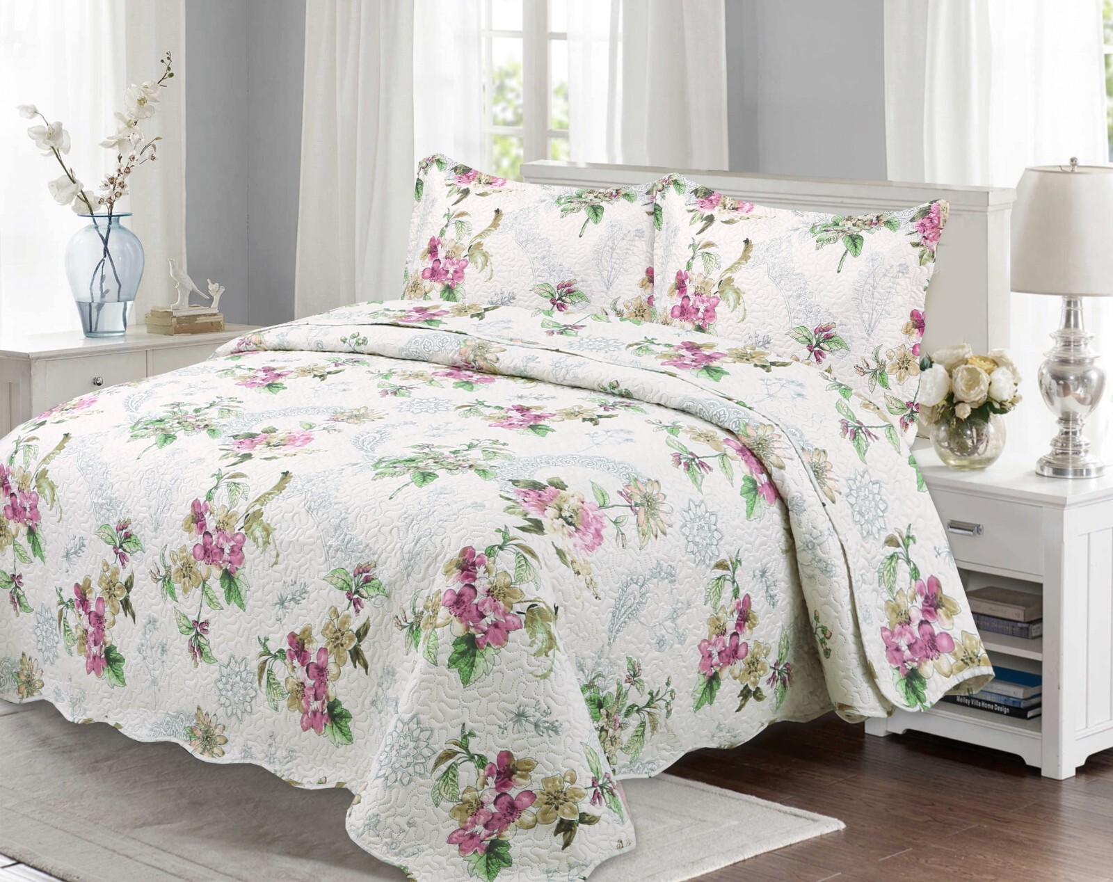 Embossed Printed Bedspread Coverlet Soft Quilt Set, Purple Floral Mandala King