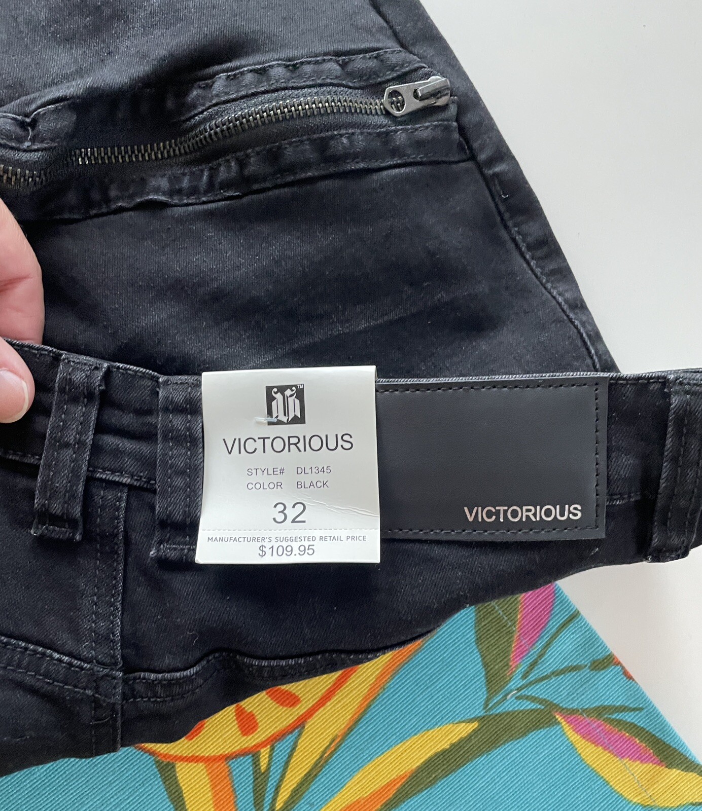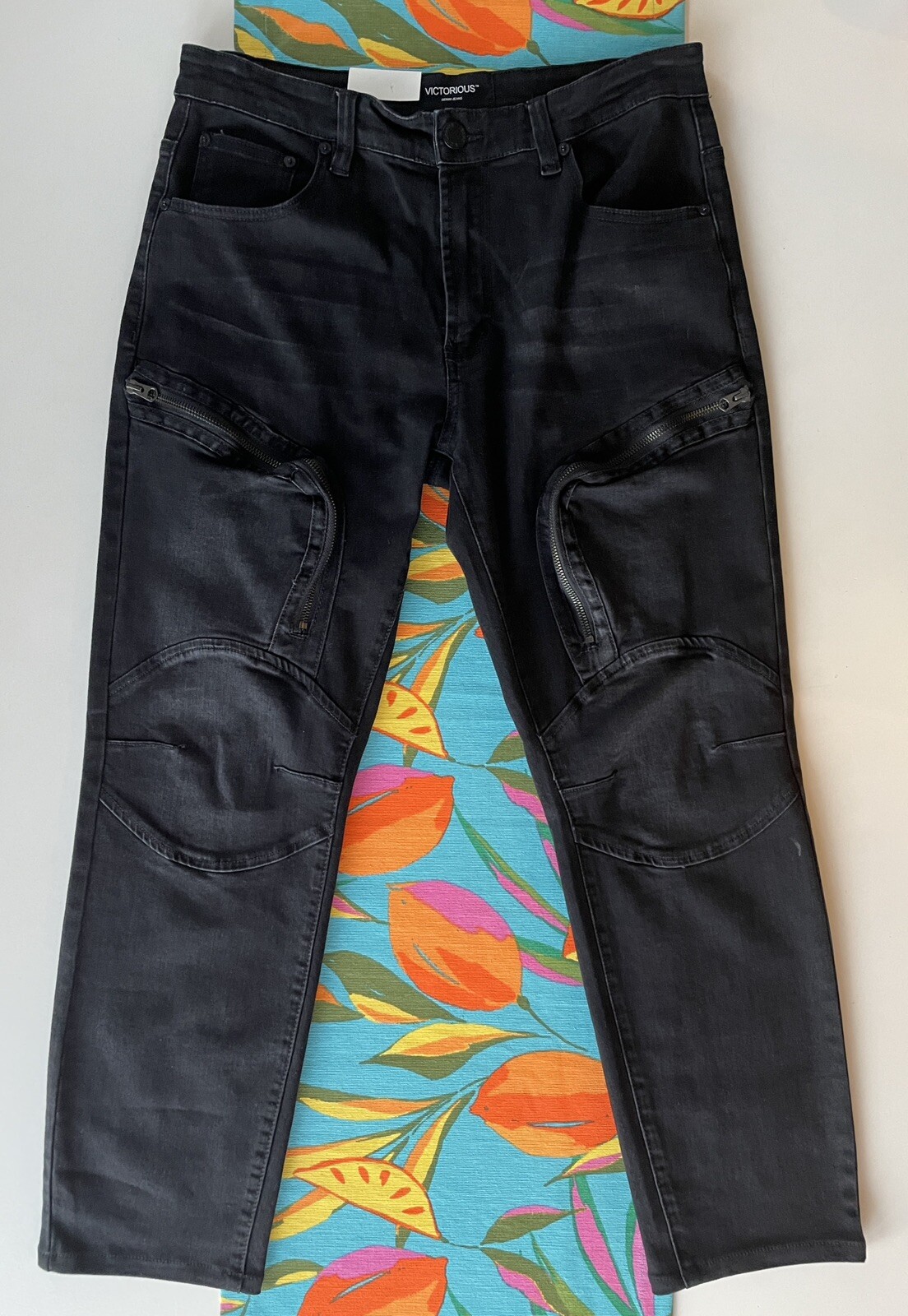 как выглядит Victorious Men Over-Dyed Black Size 32 Stretch Cargo Slim Fit Denim Jeans фото