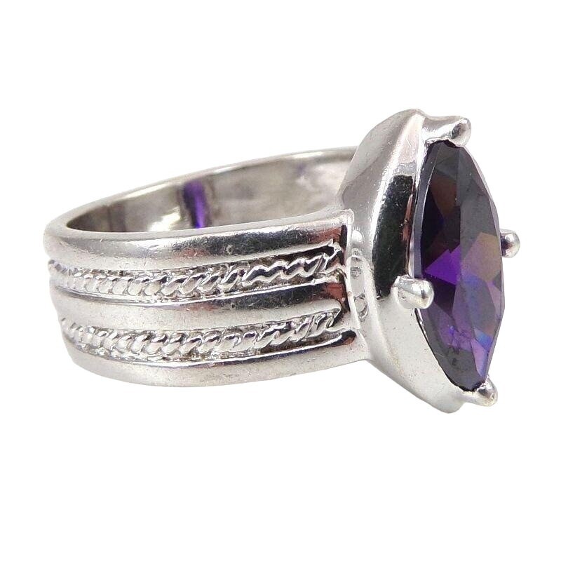 Boho Wide Sterling Silver Purple Amethyst Marquise Ring Size 7