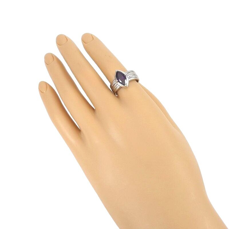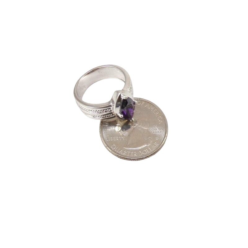 как выглядит Boho Wide Sterling Silver Purple Amethyst Marquise Ring Size 7 фото
