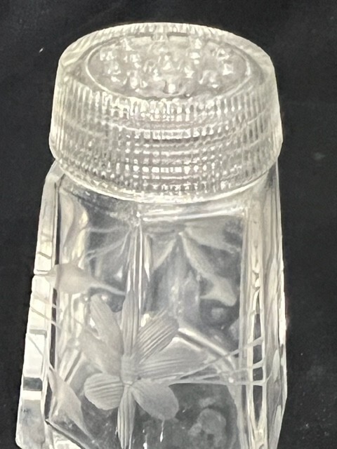 • Vintage Antique Etched Glass Salt and Pepper Shaker set