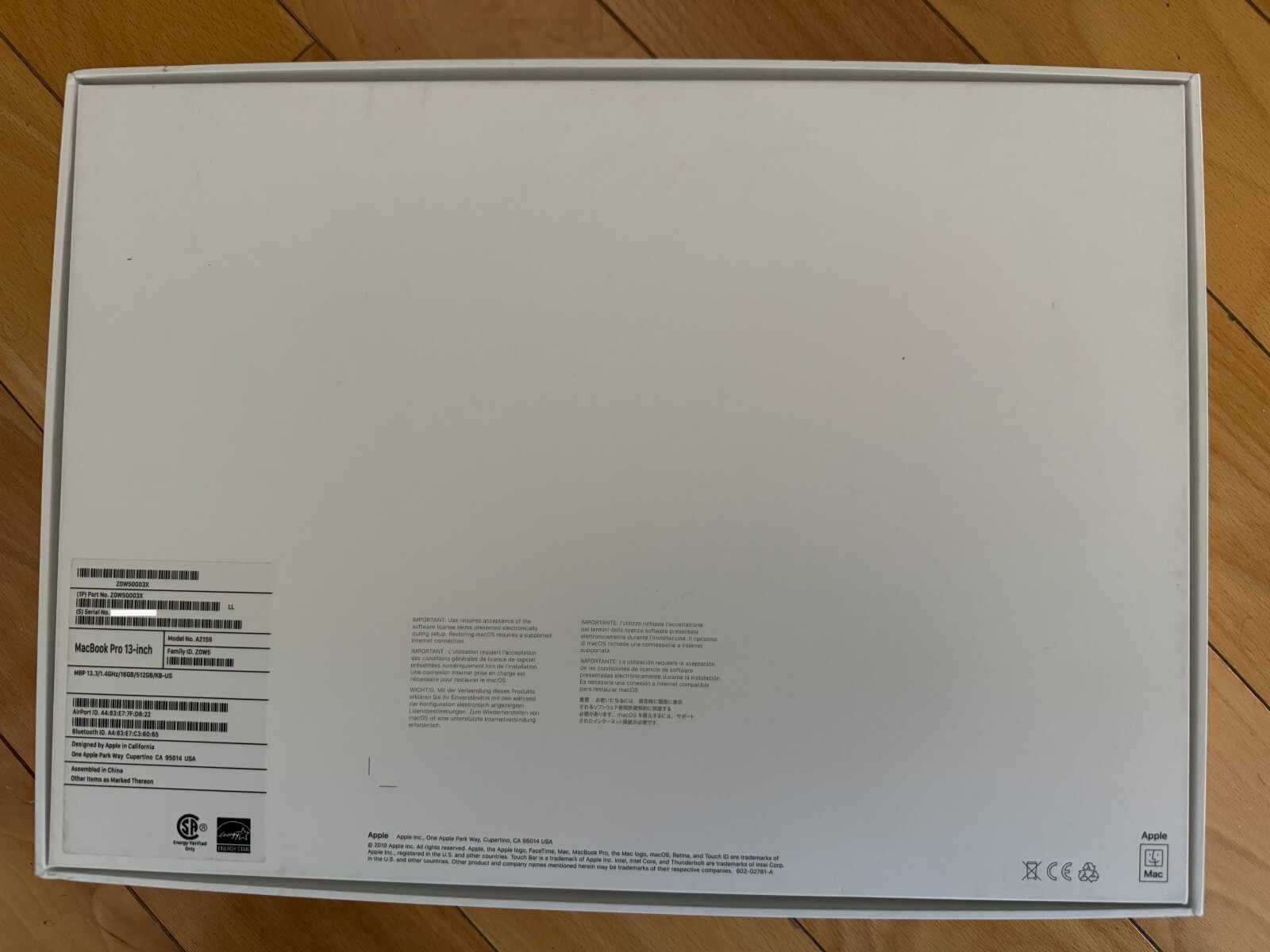 BOX ONLY Apple MacBook Pro 13-inch A2159 Space Gray, EMPTY BOX ONLY