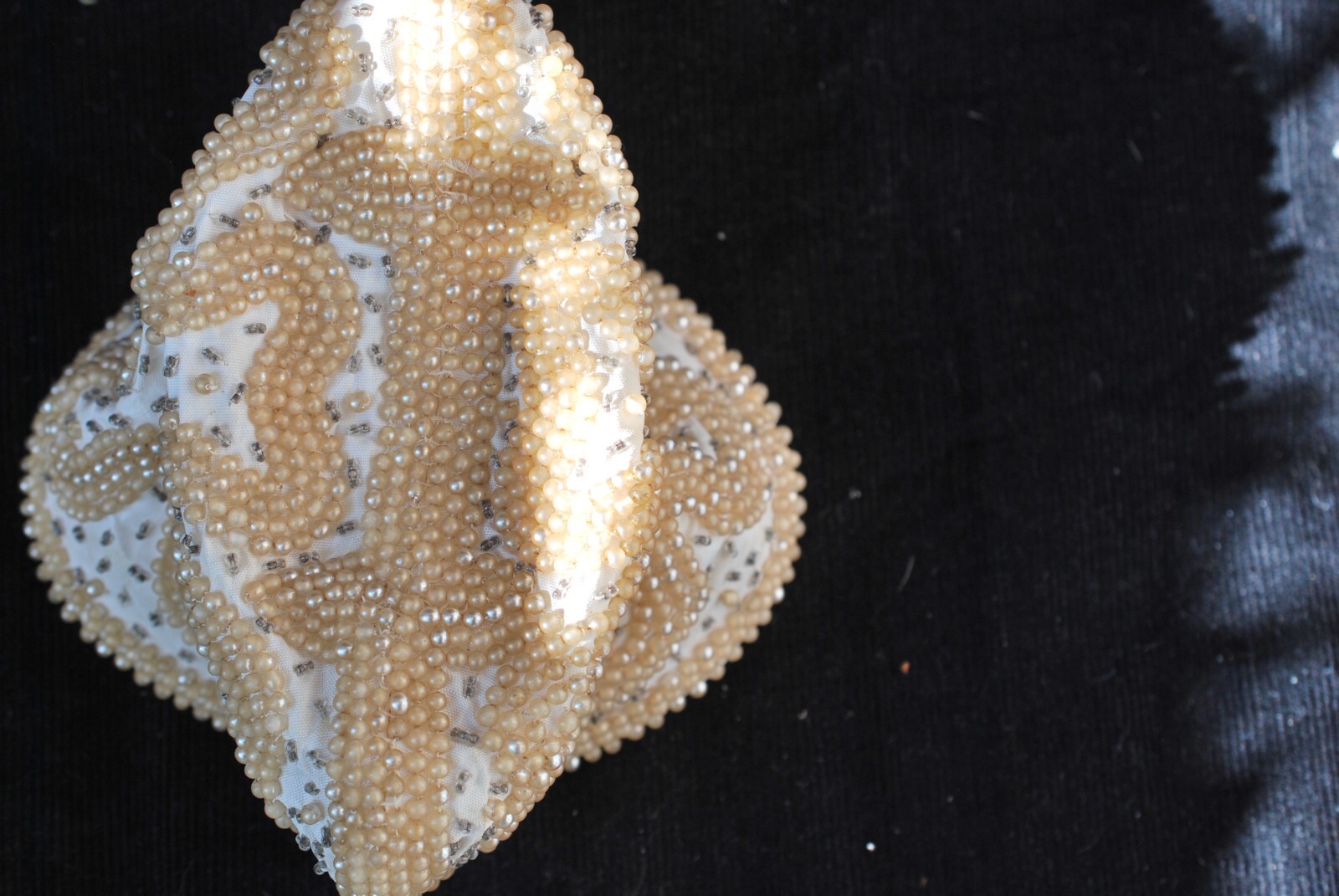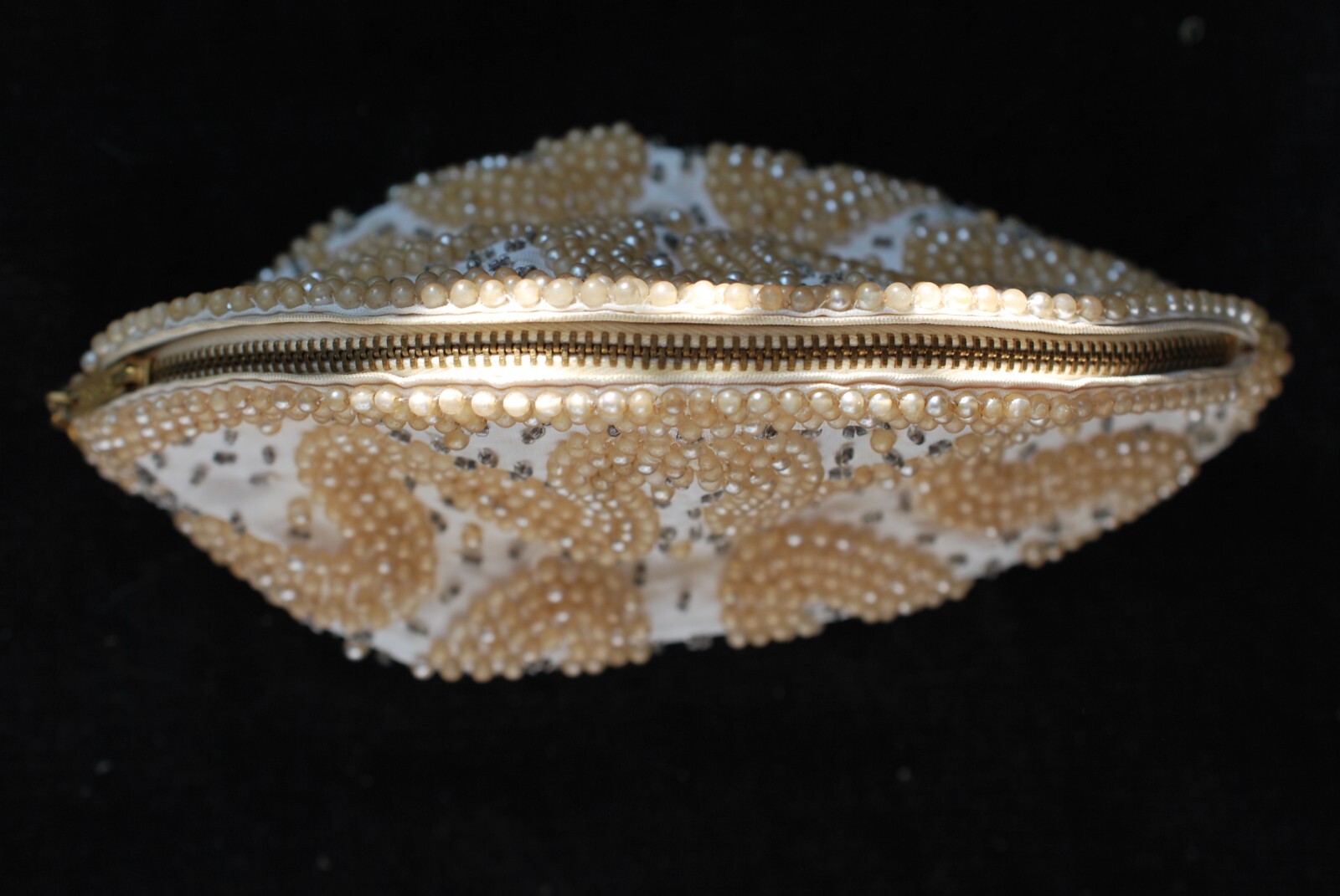 как выглядит Vintage Beaded Gold/Ivory Leaf Design Evening Bag/Purse With Zipper Close фото