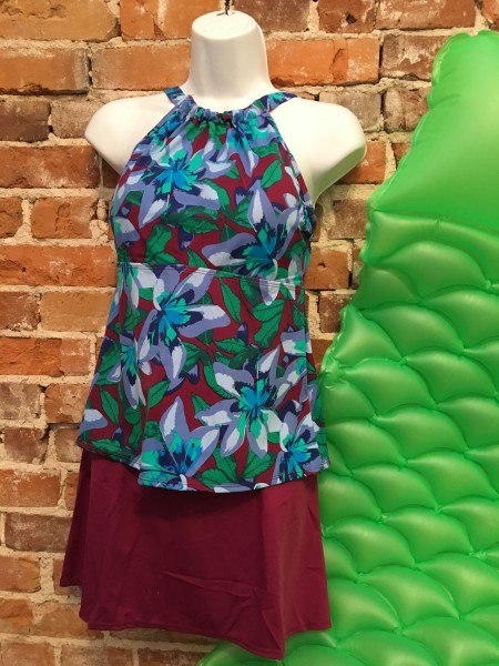 Denim Co Beach Blue Burgundy Floral High Neck Tankini Skirt Swimsuit New