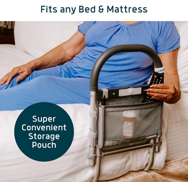 Lunderg Bed Rails for Elderly Adults Safety Motion Light Storage Pocket