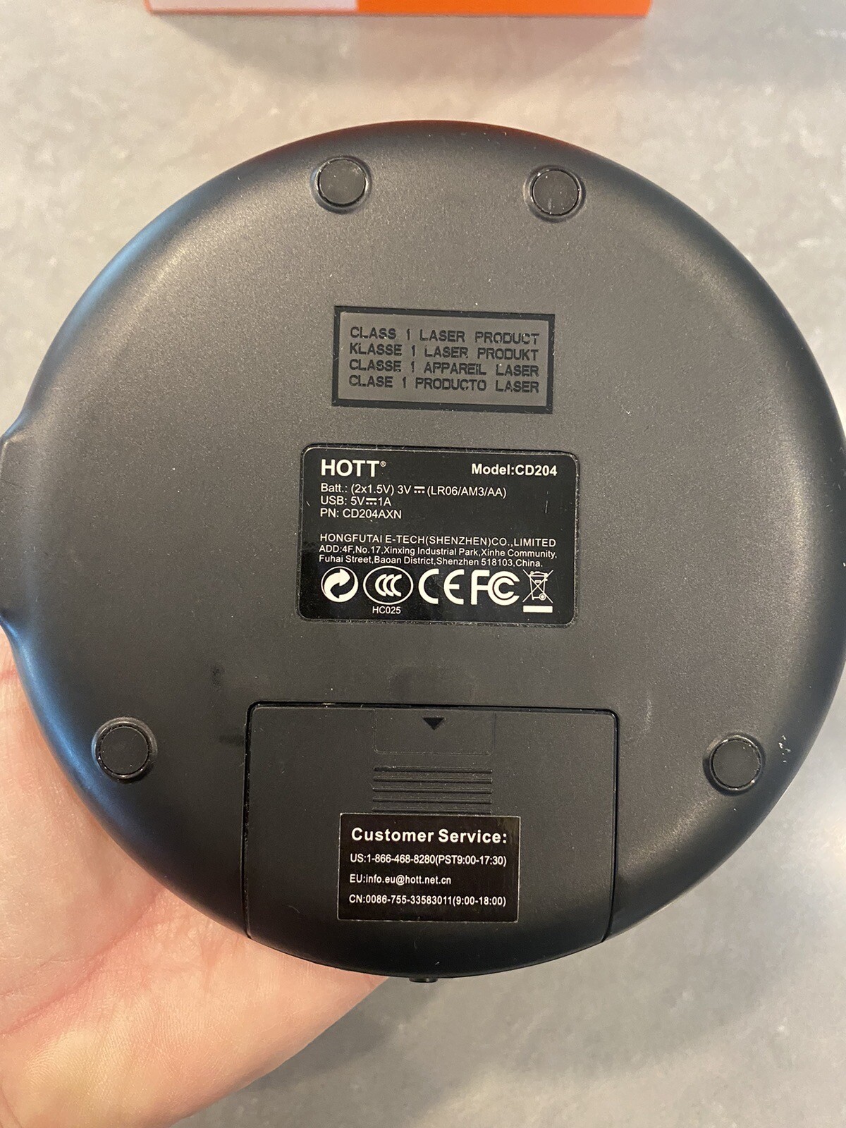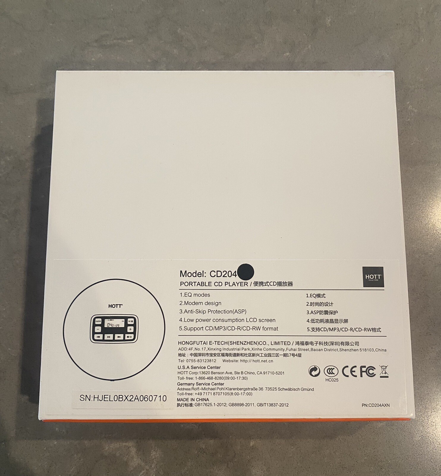 HOTT CD204 Portable CD Player Personal Compact CD Player USB Cord No Headphones