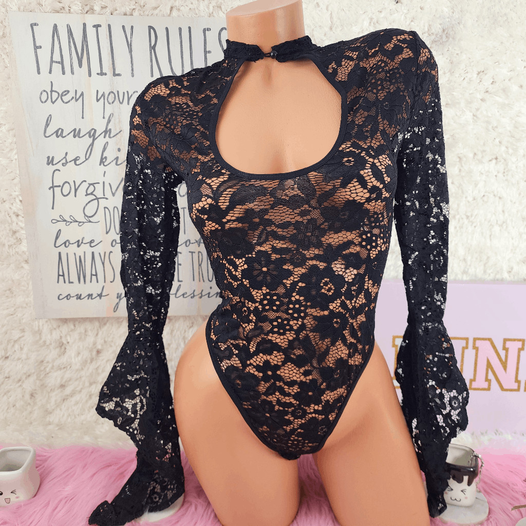 NIB Sheer Floral Lace Bodysuit: Romantic Elegance Small NIB