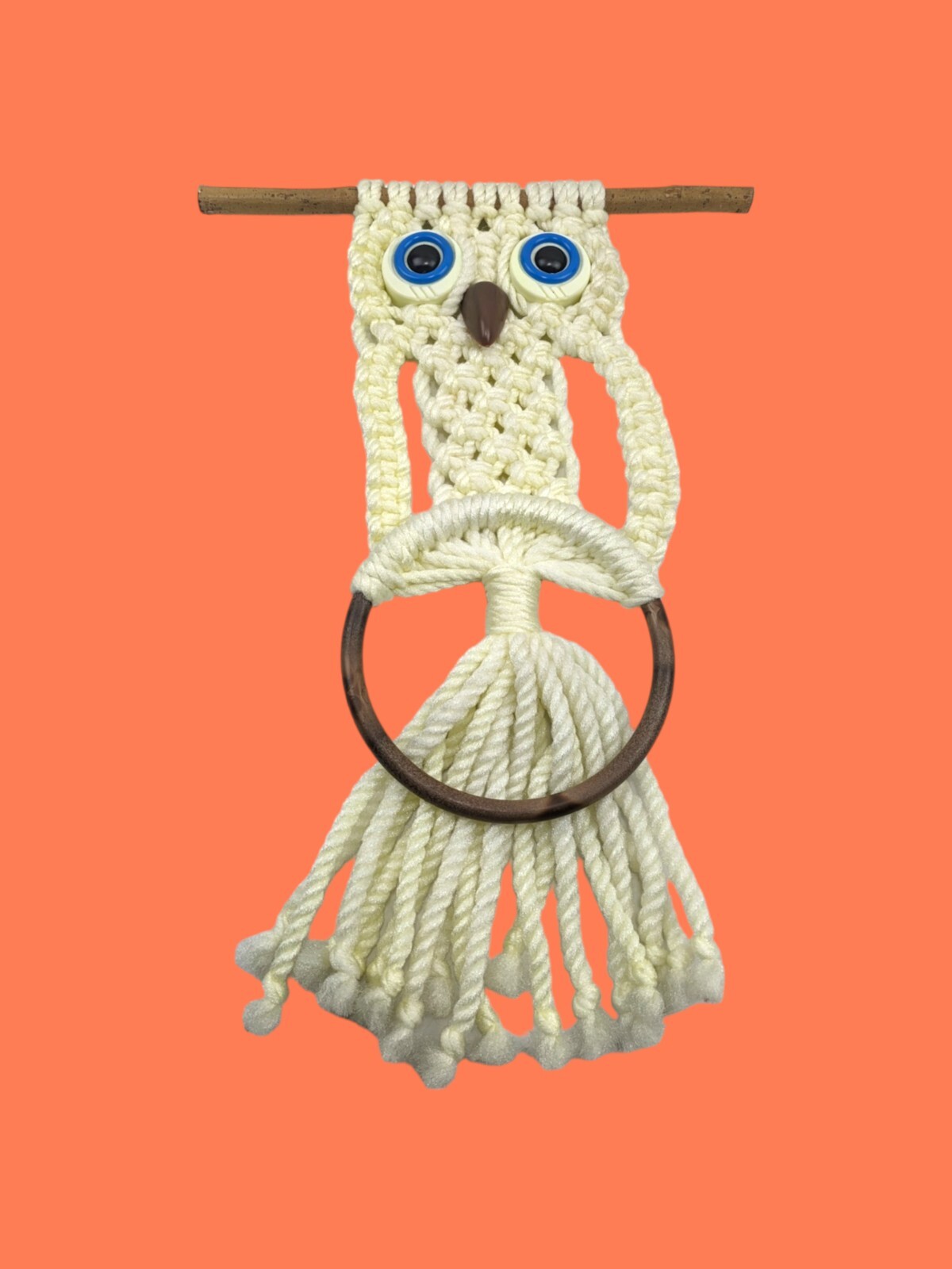 70s VTG Owl Wall Hanging Handmade Macrame Owl Towel Hanger Retro Boho Hippie