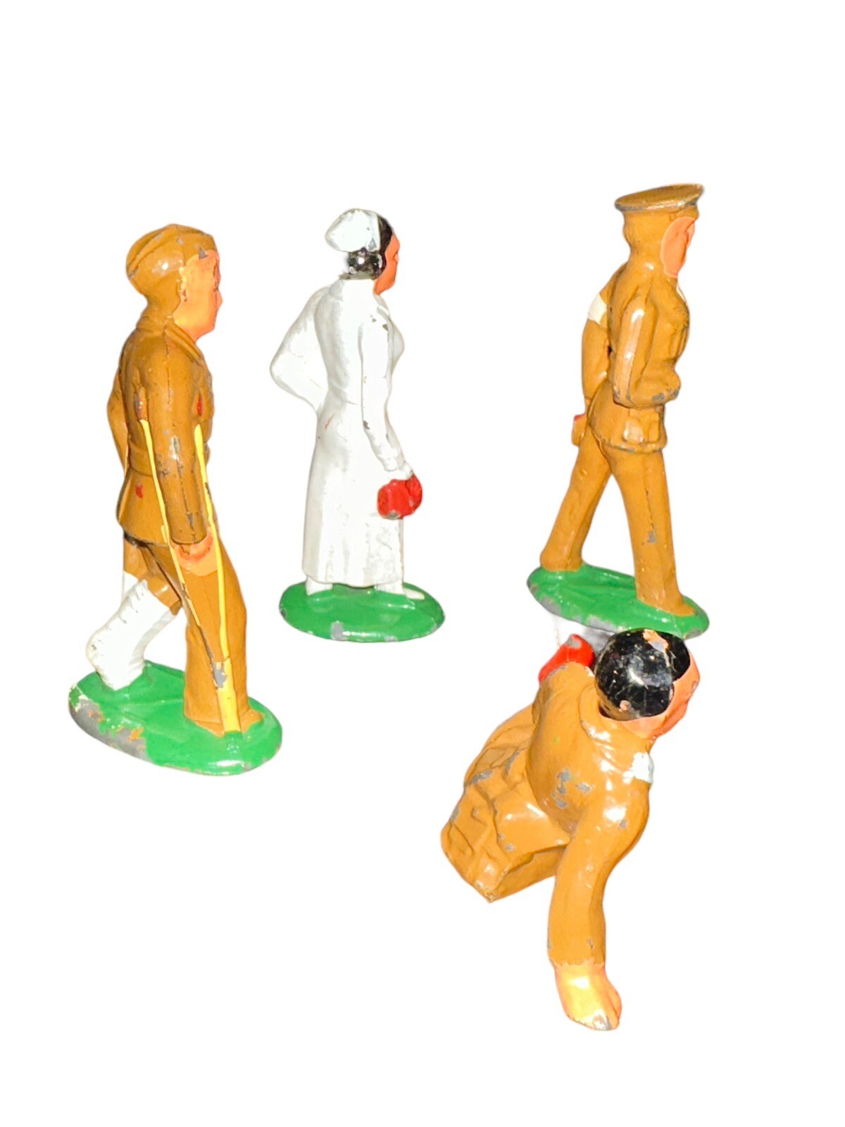 4 Barclays Manoil War Soldier Wounded Red Cross Nurse and Doctor Hollow Lead Fig