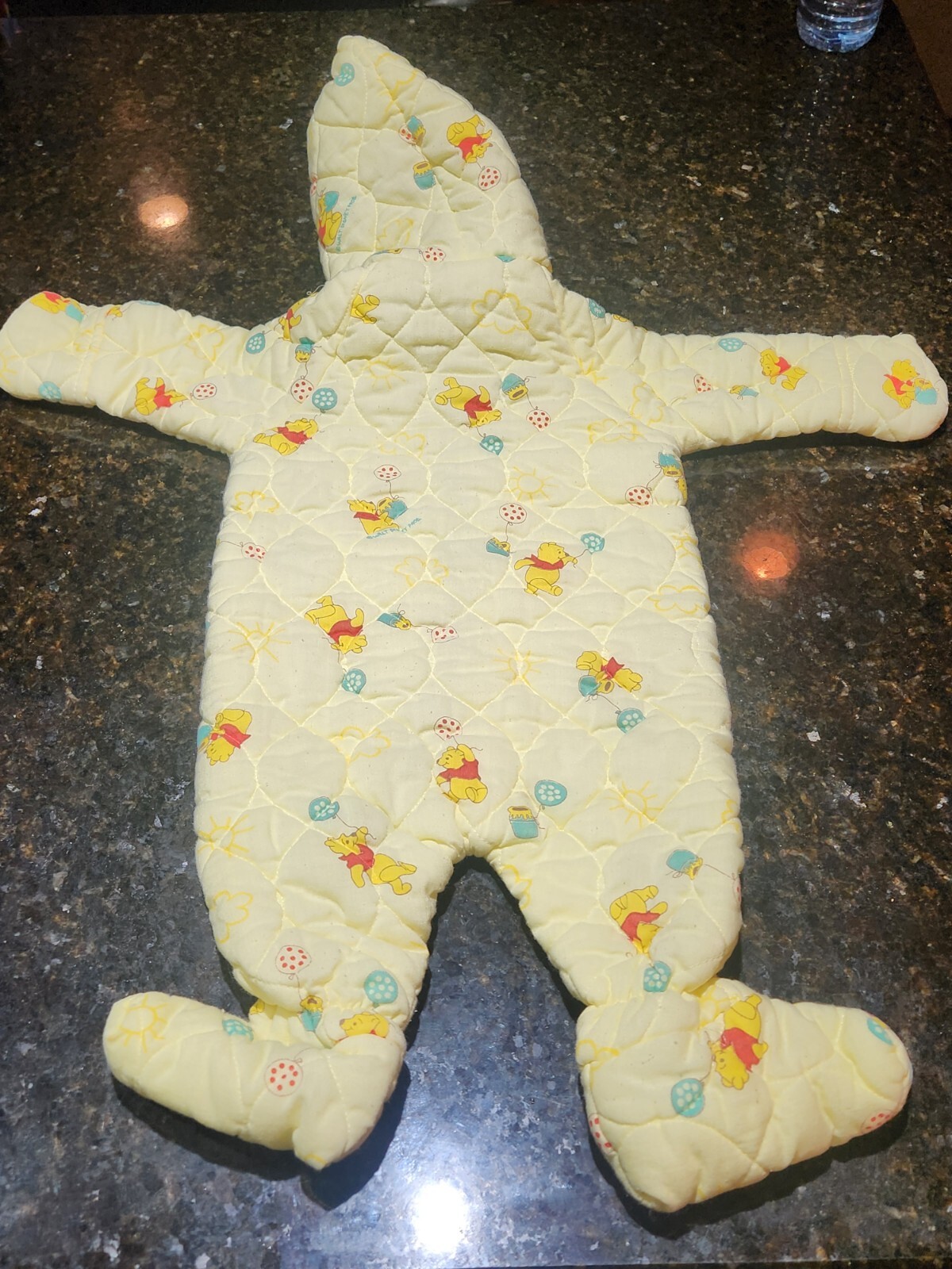 Vintage Walt Disney Winnie The Pooh Quilted Yellow Baby Blanket Sleeper