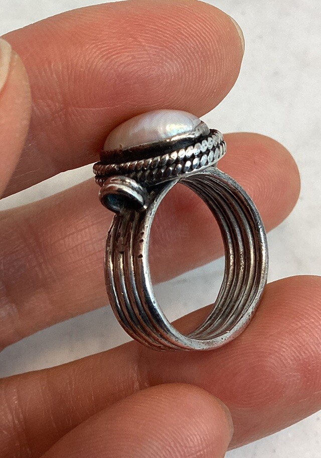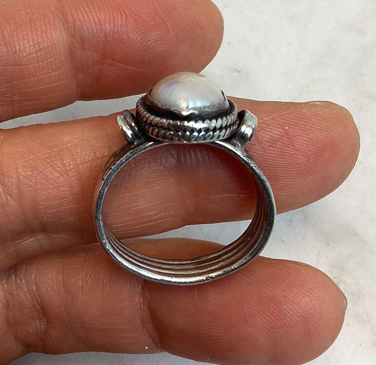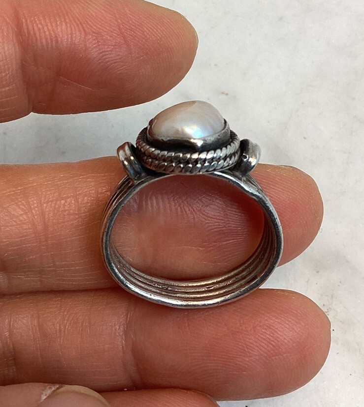 как выглядит Vintage Sterling Silver Fresh Pearl Ring Size 6 фото